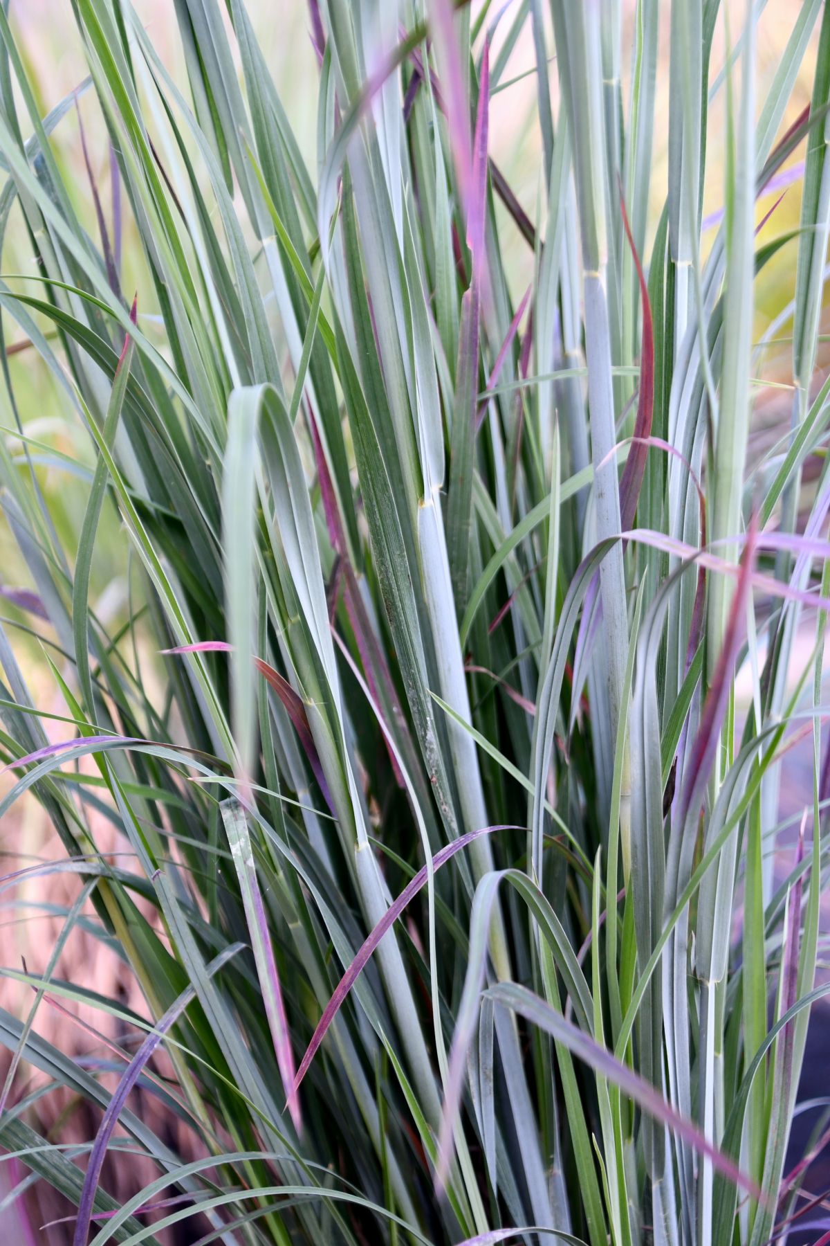 Upright powder blue plants land on the tall side of little bluestem, reaching four feet tall. Foliage is wider, too. Fall color leans to creamy orange and purple with a wide range of seasonal colors. Full sun; average to dry soil.