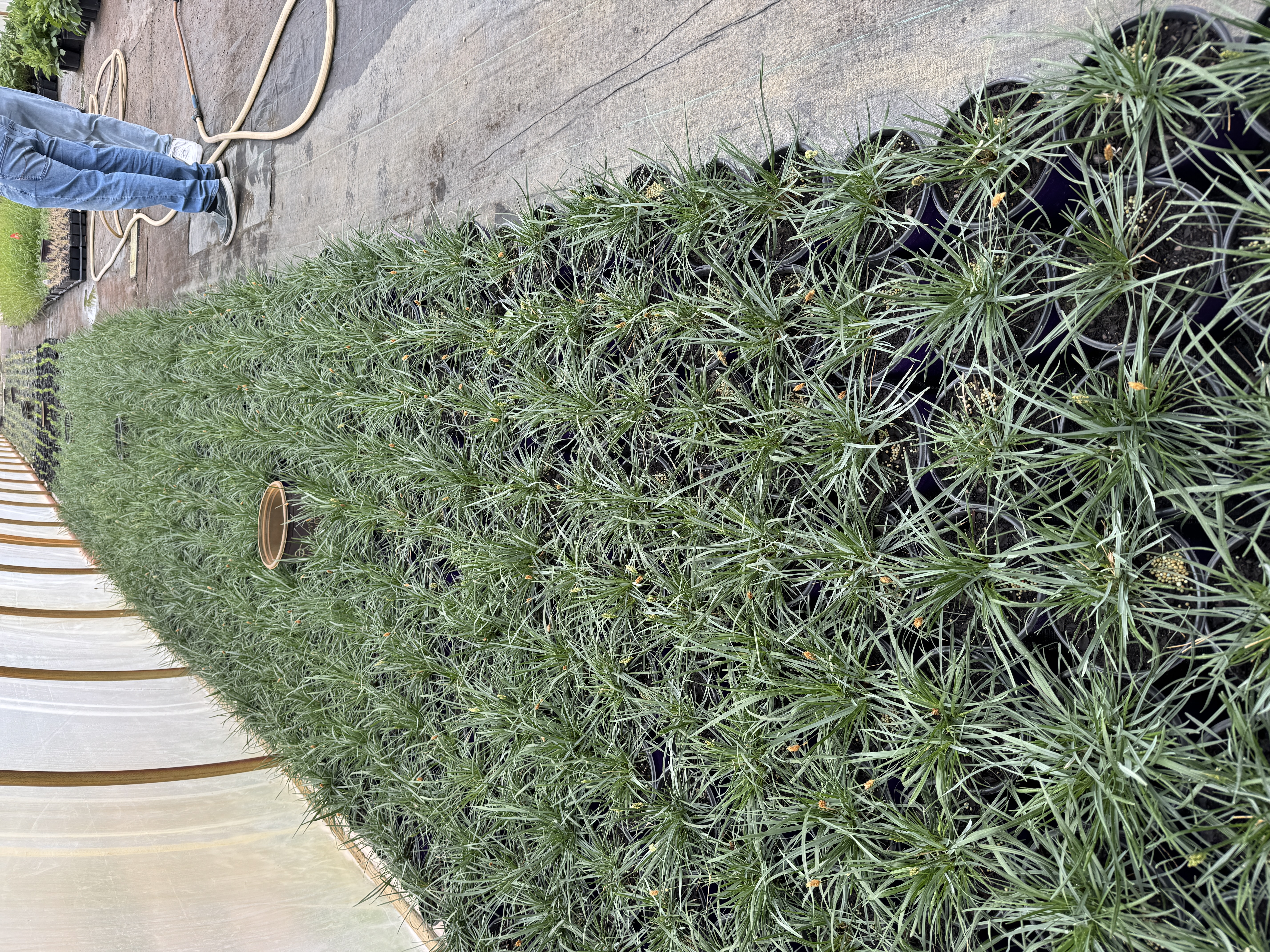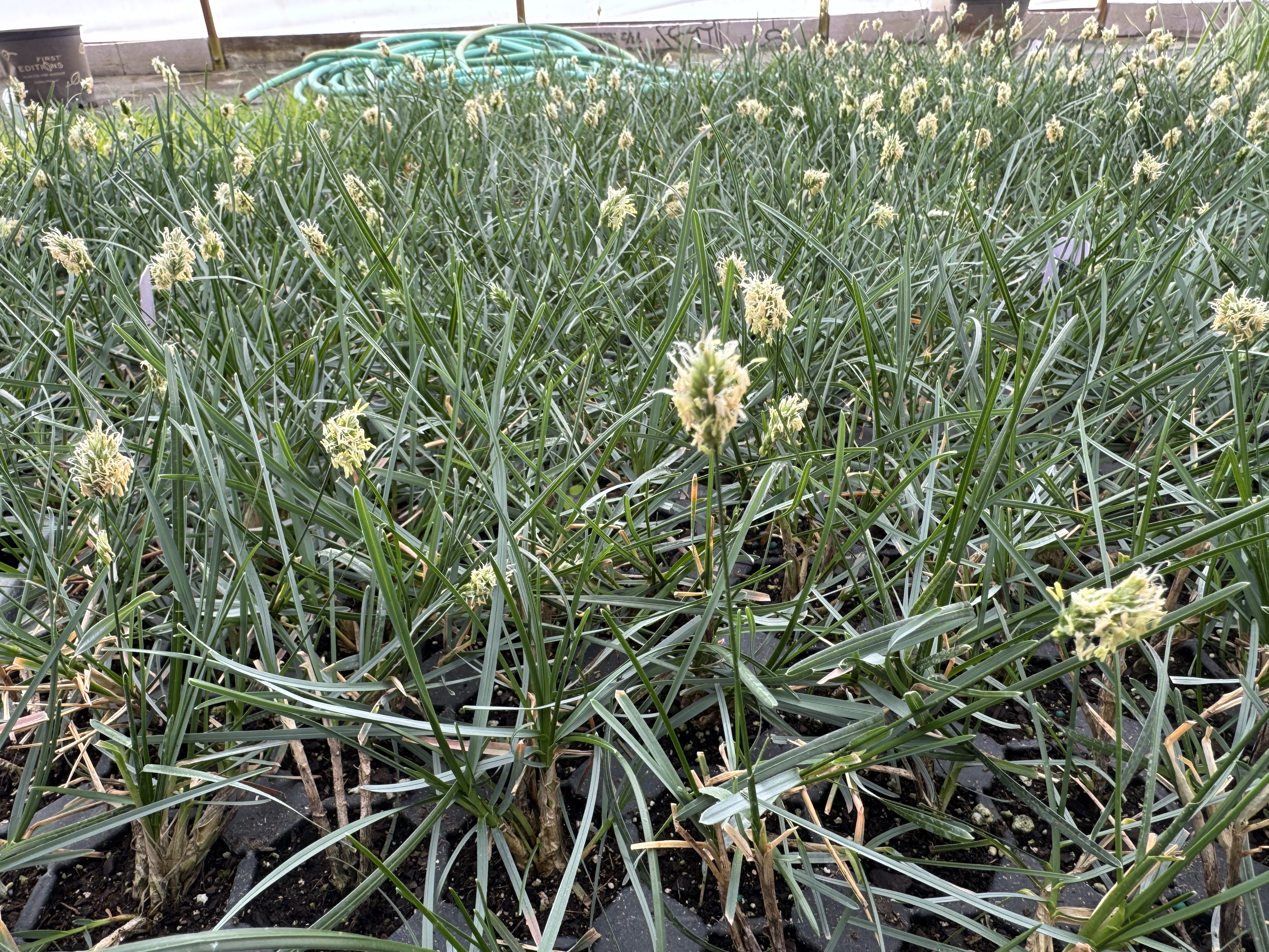 Sesleria x ‘Star Crossed’ was born from a cross of two exceptional blue forms of sesleria. The result is wider and bluer foliage in a compact mound maturing at 8 to 10 inches tall and 12 inches wide. Creamy yellow flowers are held on winged stems 15 inches in length. Sesleria grows best in cool times of the season, preferring average-to-moist soil and tolerating full sun to light shade. It makes a perfect foil for low spring flowering bulbs and perennials.