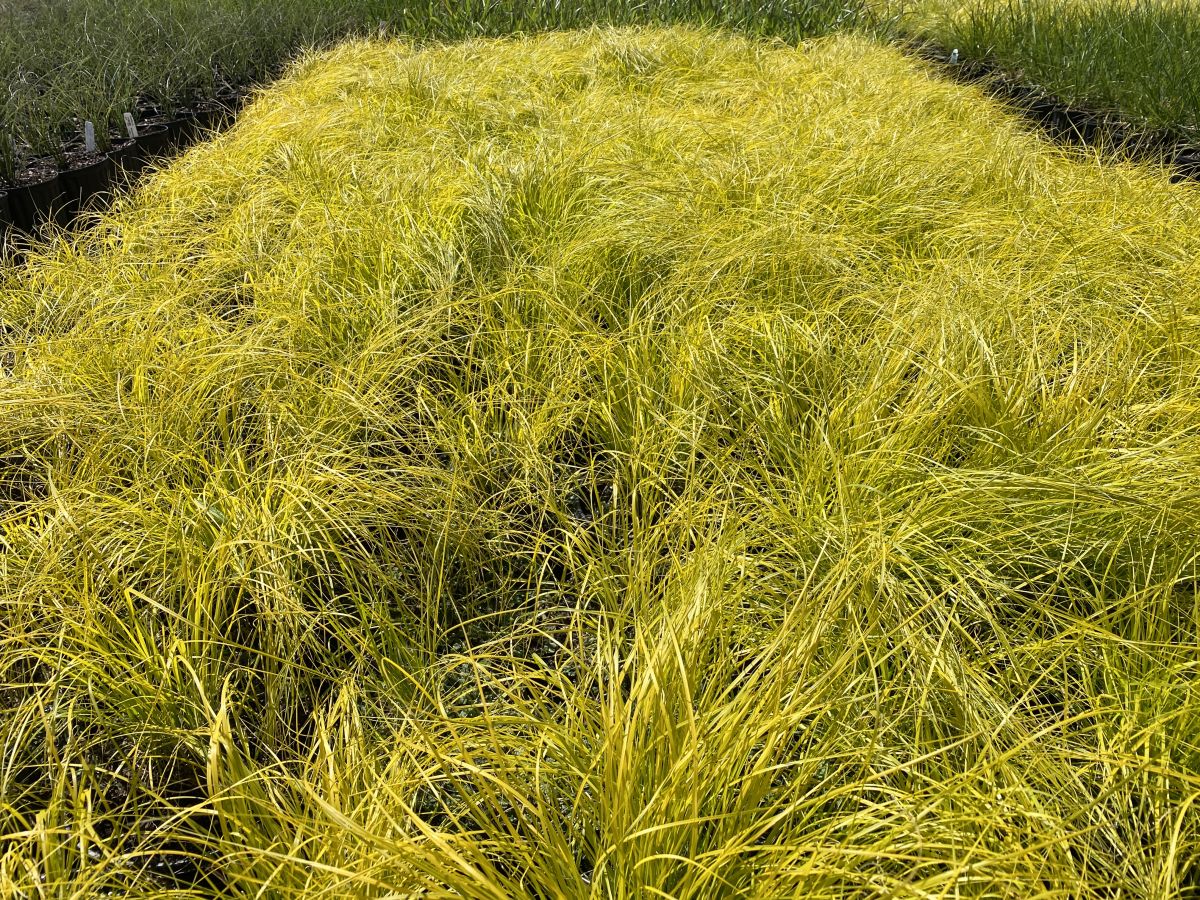One of the showiest crops from April into July in 2024. This all gold leaf prairie dropseed has good vigor and size similar to the species. After July the foliage moves to the chartreuse side of yellow. Flower stems reach three feet tall. Adaptable plants are best in dry to well-drained soil. Foliage is brightest in full sun and lean soil.