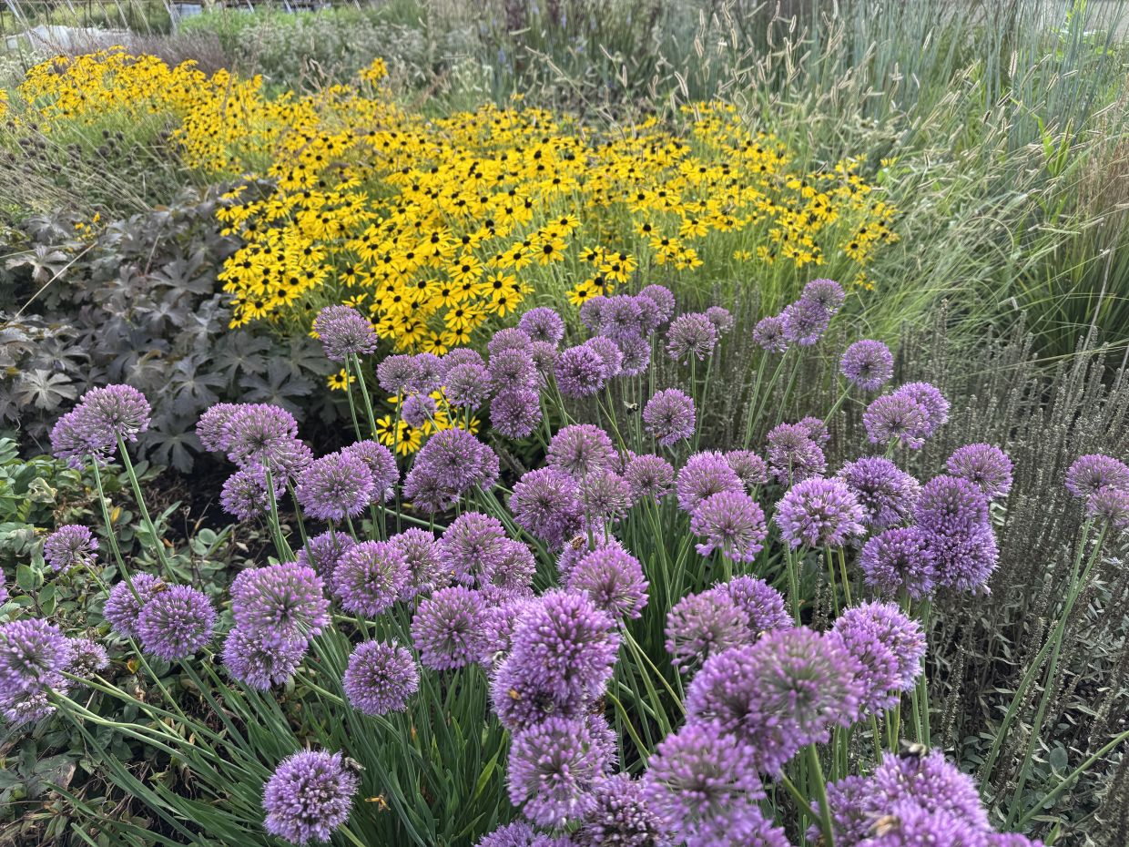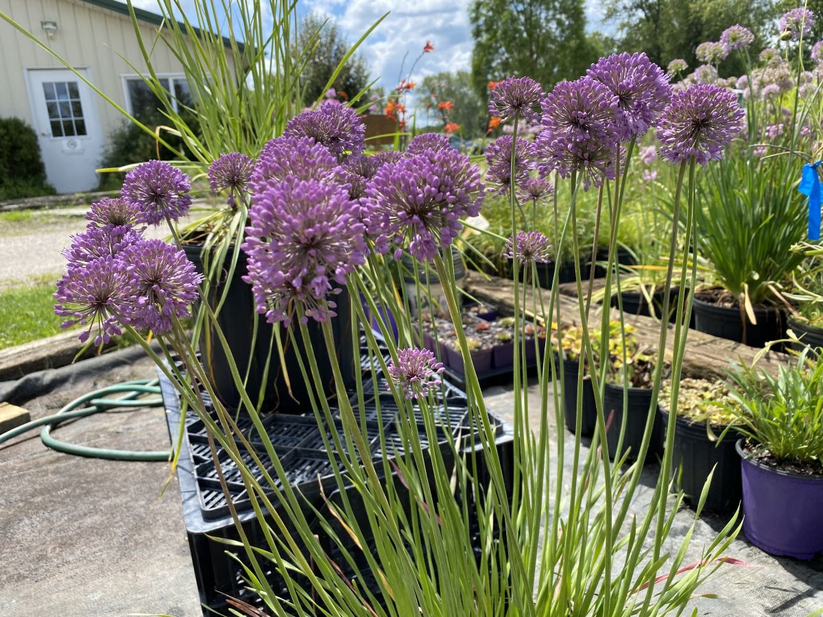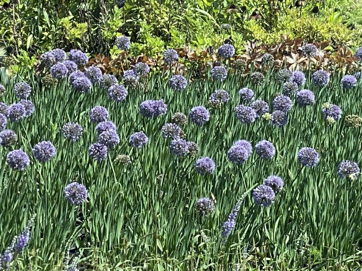 An Intrinsic Introduction, Allium x ‘Blue Moon’ PPAF has rich lavender-purple flowers late in the season that verge on blue at times. Flowers are fully two-inch balls on slightly arching 18-inch stems above gray-green foliage. Plants bloom at just the right time to fill in the late summer gap leading to fall. They prefer full sun and well drained soil.