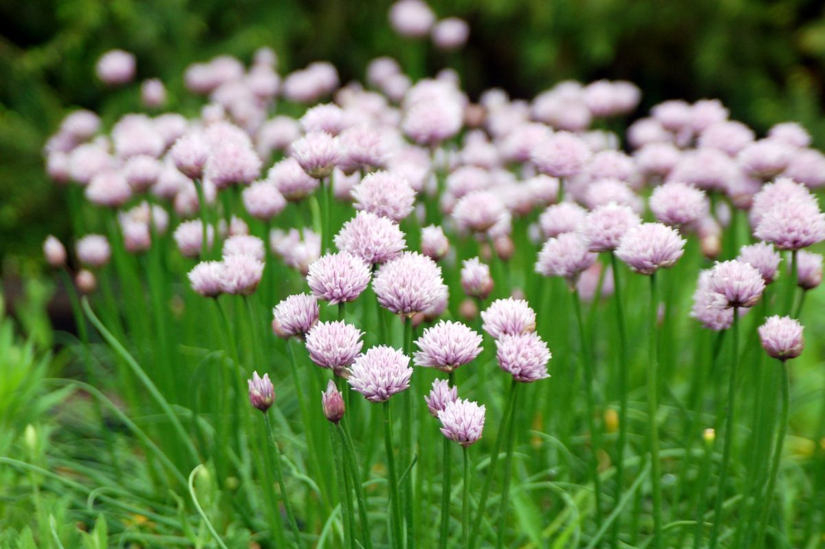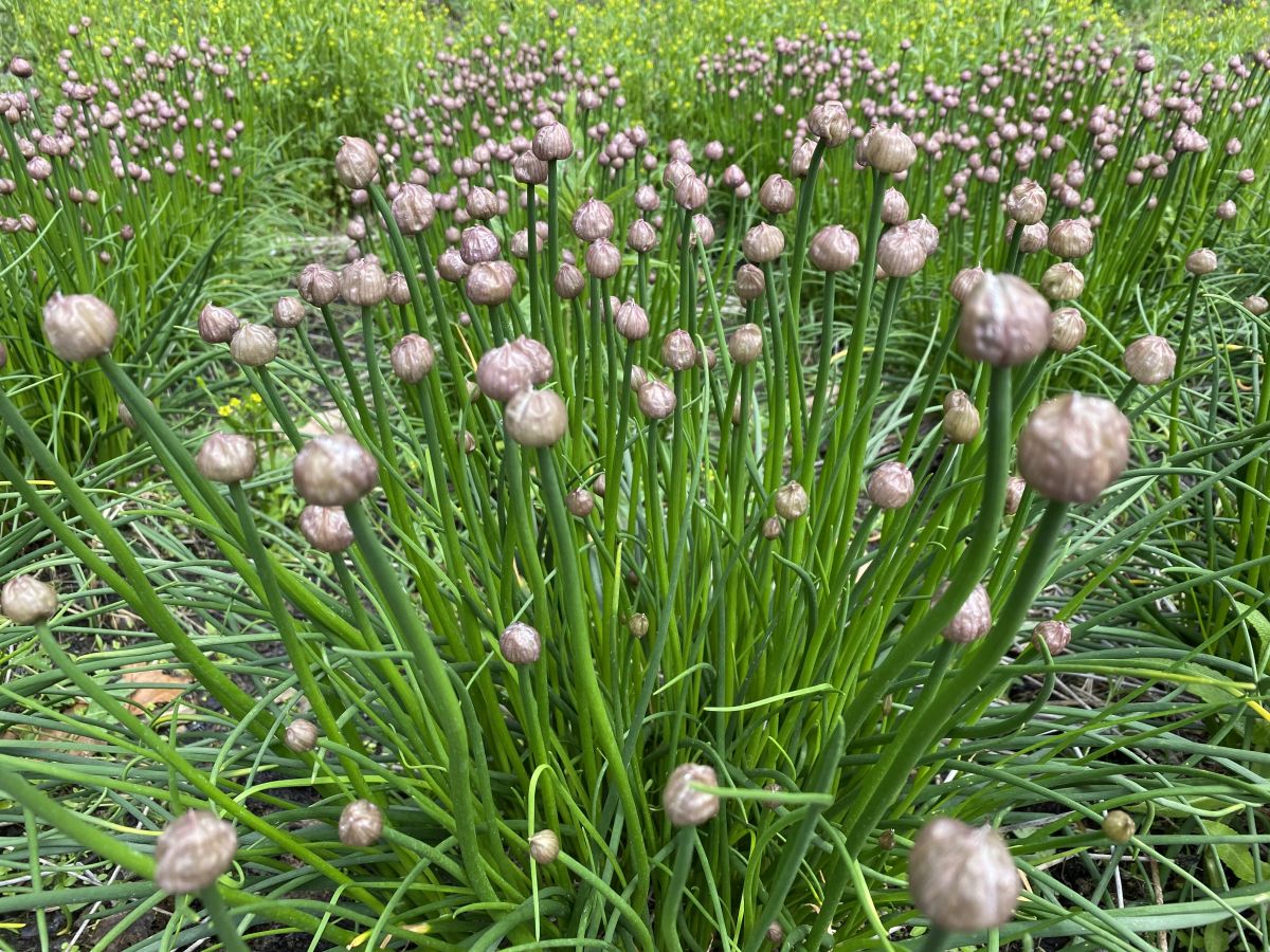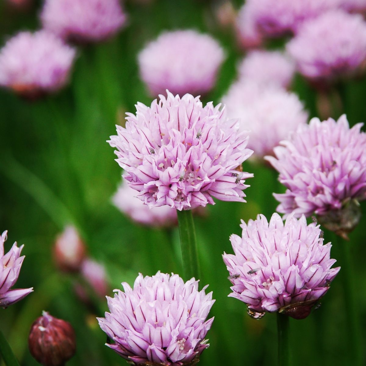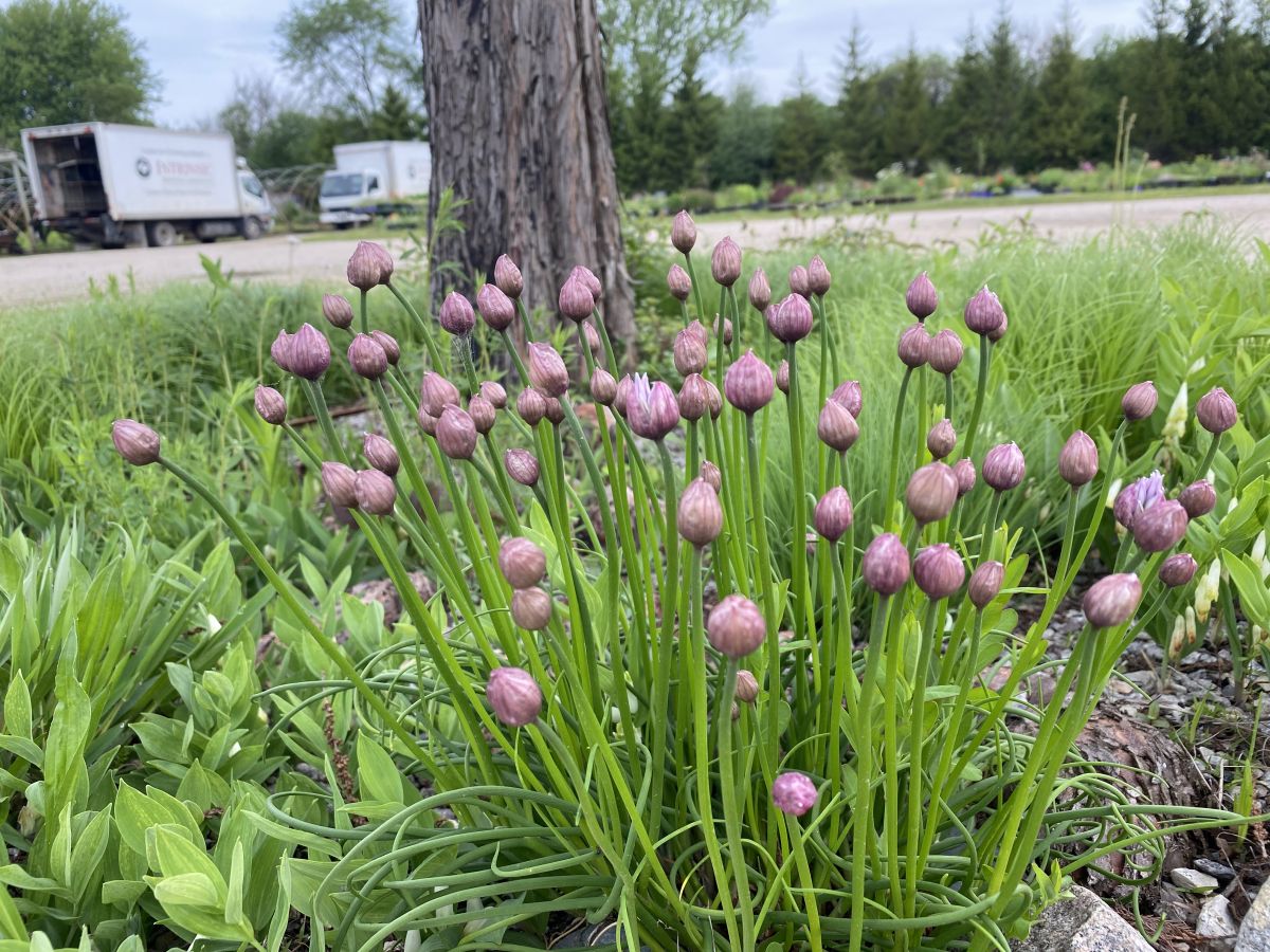 A mostly sterile chive with edible kelly green foliage all season long. Initially upright but then more relaxed, blades reach 12 to 15 or more inches long. This vigorous plant is easy to grow. Lavender purple flowers with a purple stripe down the middle of the petal are also edible, and are held on 12-inch or longer stems. Beginning as round buds the flowers open to one inch wide. Full sun is preferred. Average to dry soil.