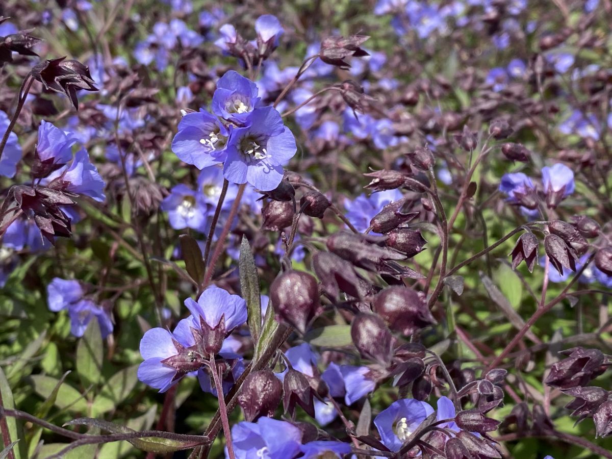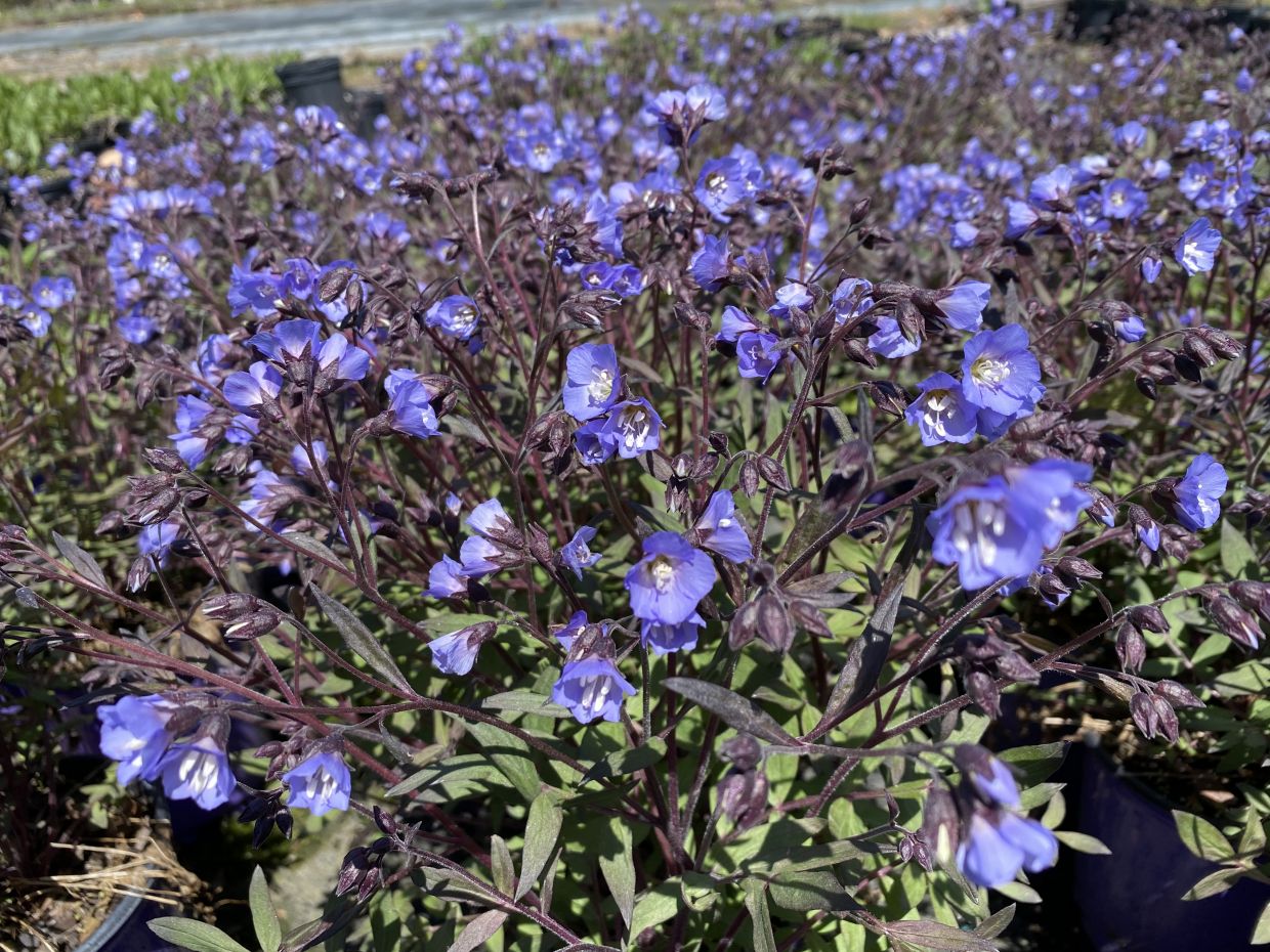 Polemonium ‘Prince’ PPAF is adorned with beautiful blue flowers that cover mounds of ferny foliage in spring. Purple calyxes are attractive long after flowering ends, adding an extra season of interest. In the spring and fall, foliage is tinged with shades of purple, infusing the landscape with rich color and texture.