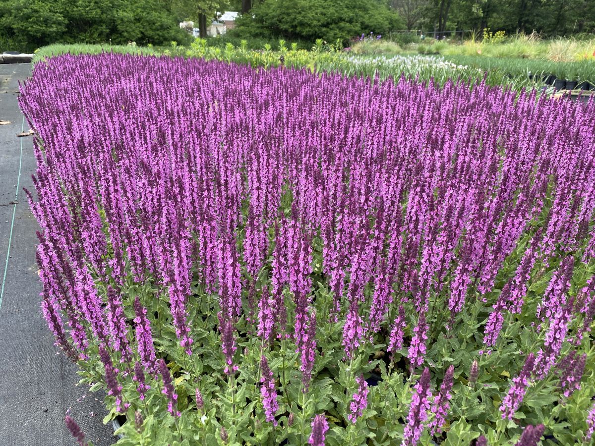 Don’t let the soft pink color fool you. Upright, unbranched stems are purple and calyxes are near violet, adding depth to the plant. Late spring blooming. Prefers well-drained soil.