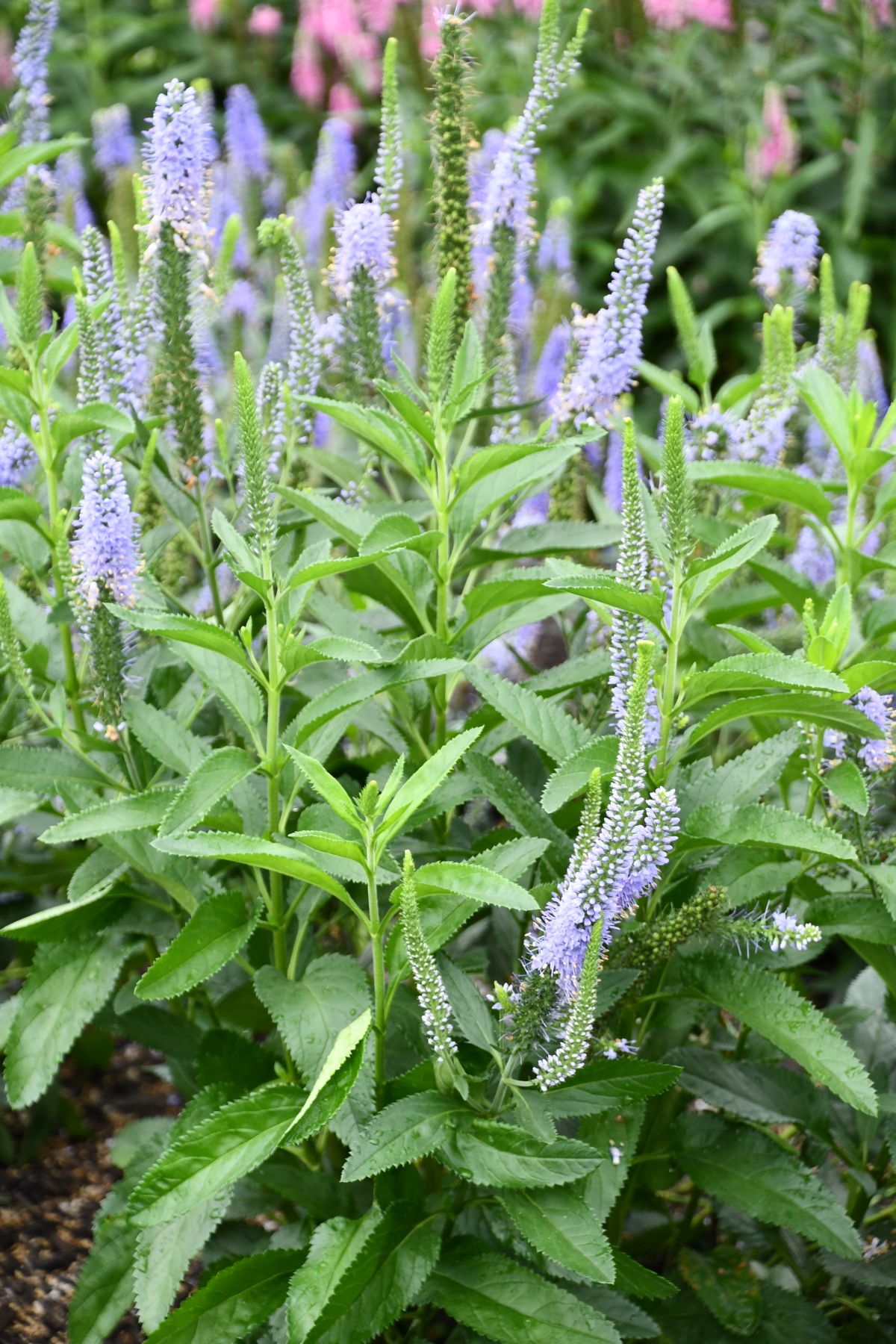 This more substantial veronica grows taller with broader bright green foliage. Nearly woody stems are topped with wider, longer sky blue flowers over an extended bloom period. Average to well-drained soil is best.