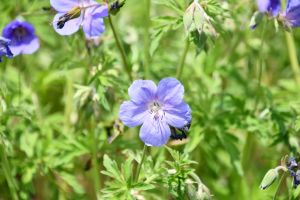 thick blue flowers on larger plants