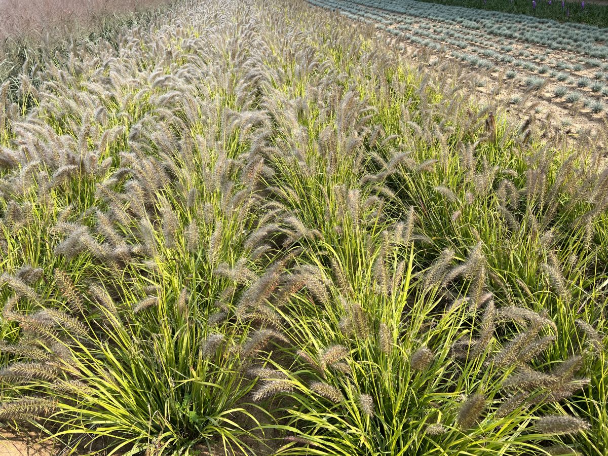 A brilliantly colored ornamental grass, 'Lemon Squeeze' boasts chartreuse-gold leaves. One of the best for vigor in gold-leafed pennisetums with absolutely no burning in the sun. Full sun is required for the brightest gold color. Copper seedheads appear above the foliage in midsummer.