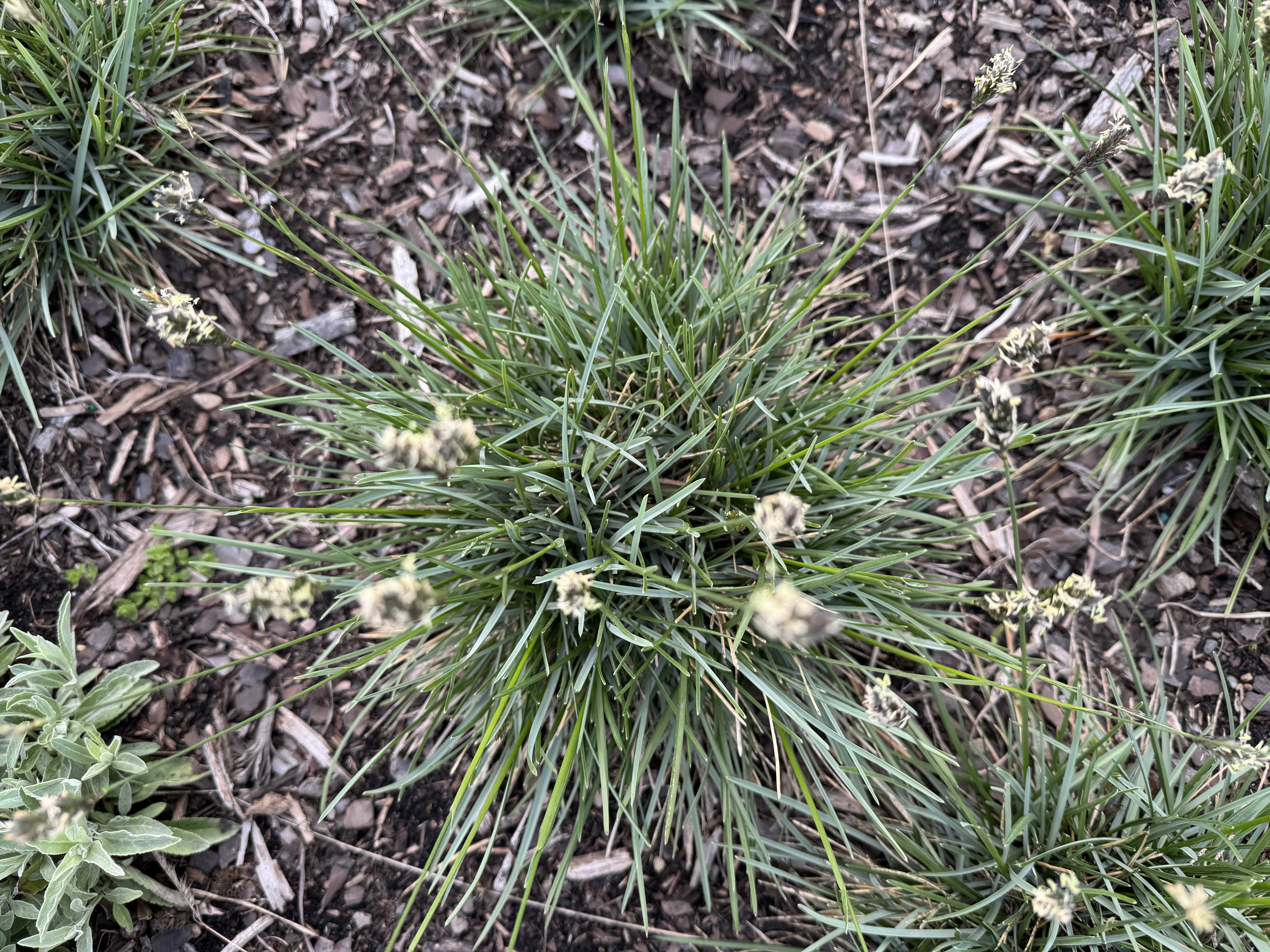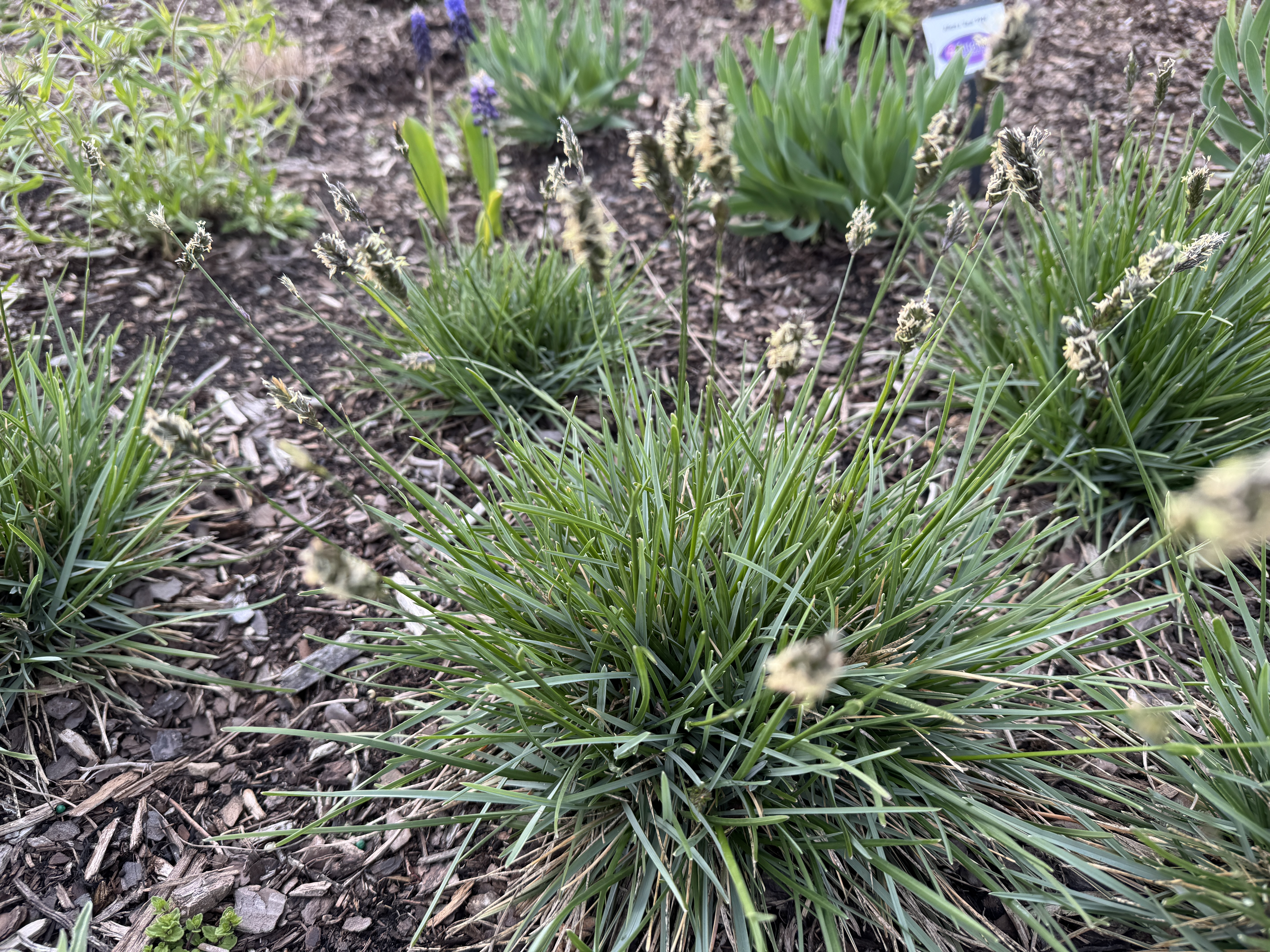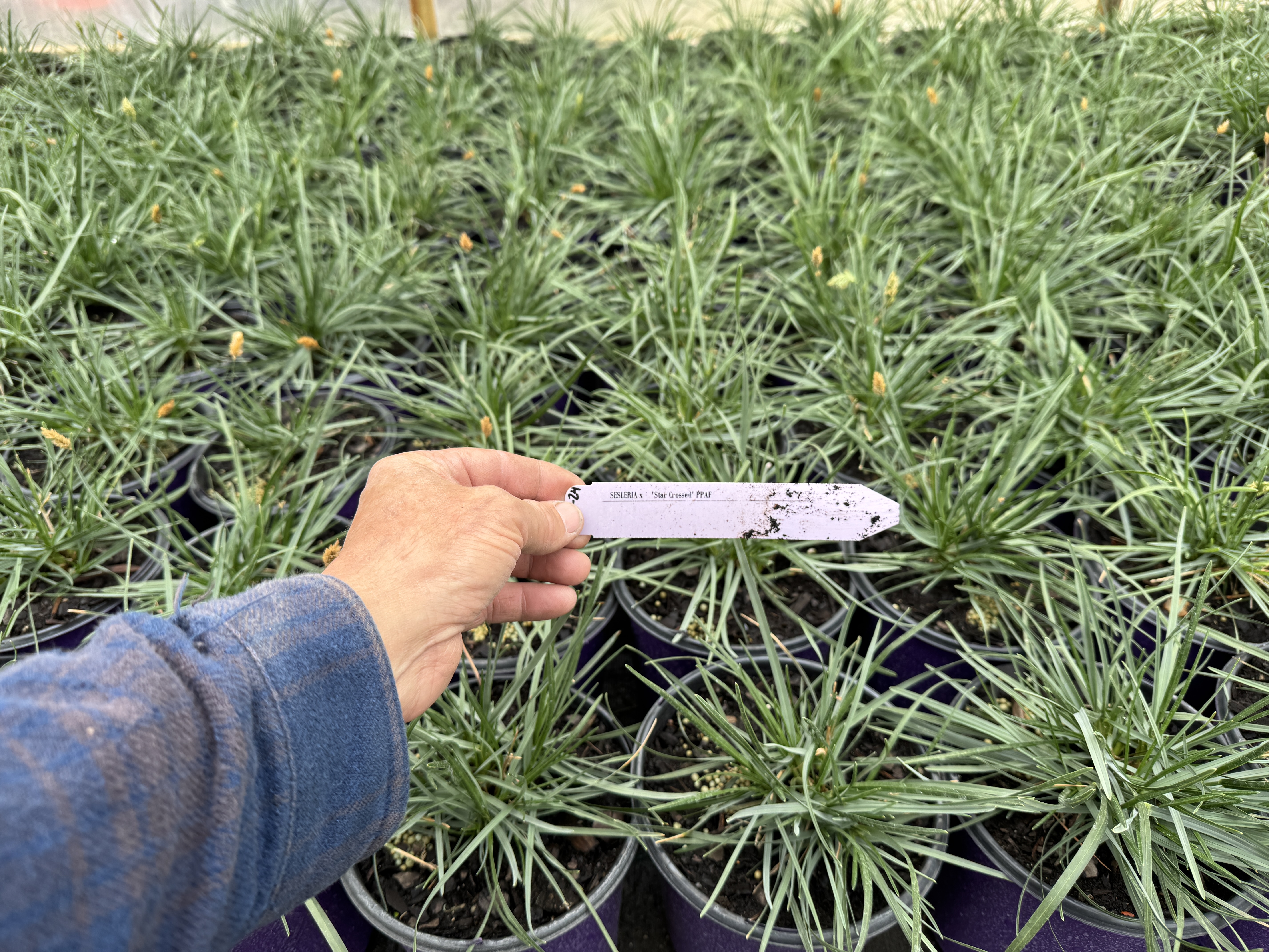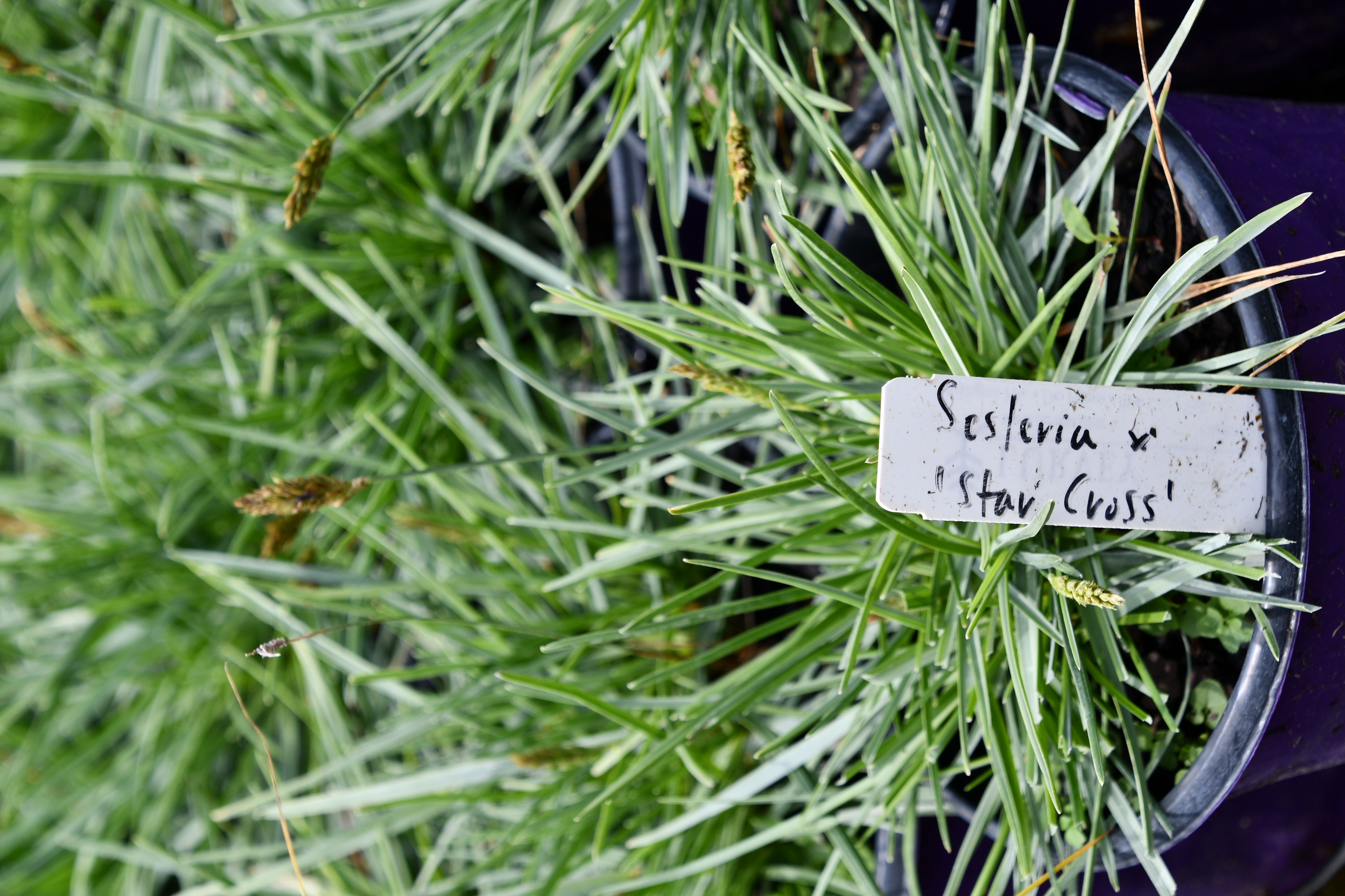 Sesleria x ‘Star Crossed’ was born from a cross of two exceptional blue forms of sesleria. The result is wider and bluer foliage in a compact mound maturing at 8 to 10 inches tall and 12 inches wide. Creamy yellow flowers are held on winged stems 15 inches in length. Sesleria grows best in cool times of the season, preferring average-to-moist soil and tolerating full sun to light shade. It makes a perfect foil for low spring flowering bulbs and perennials.
