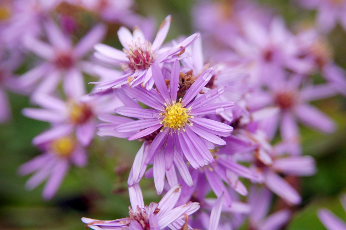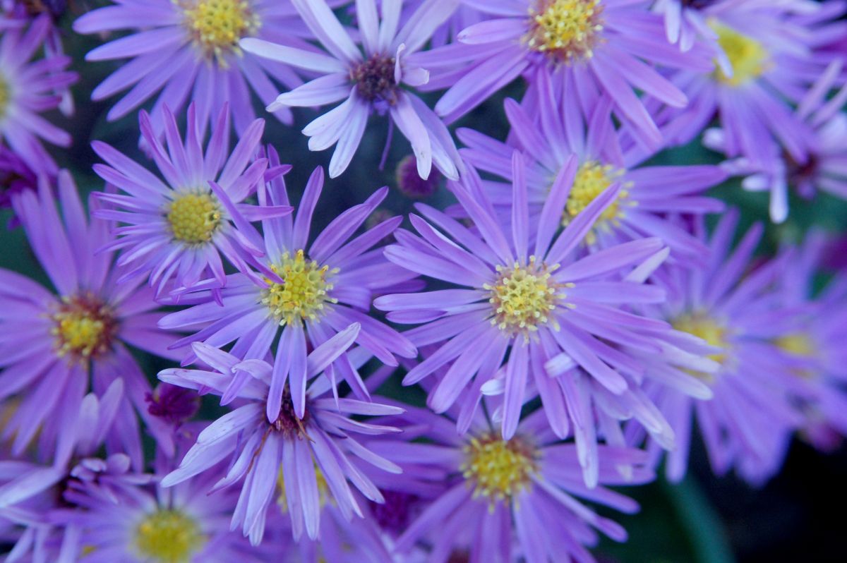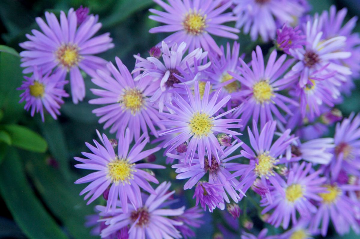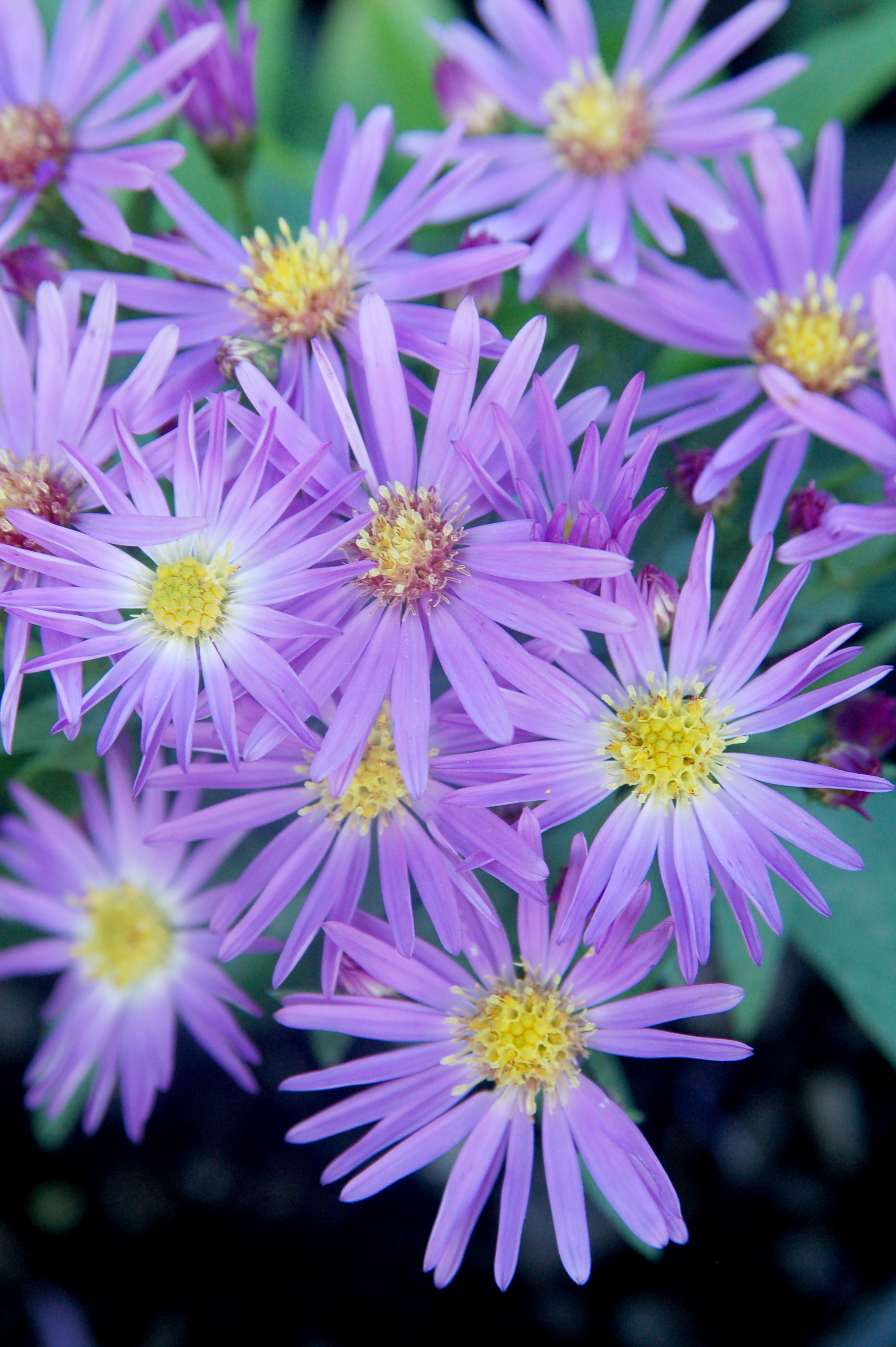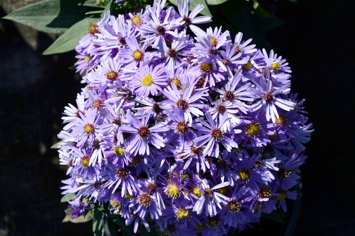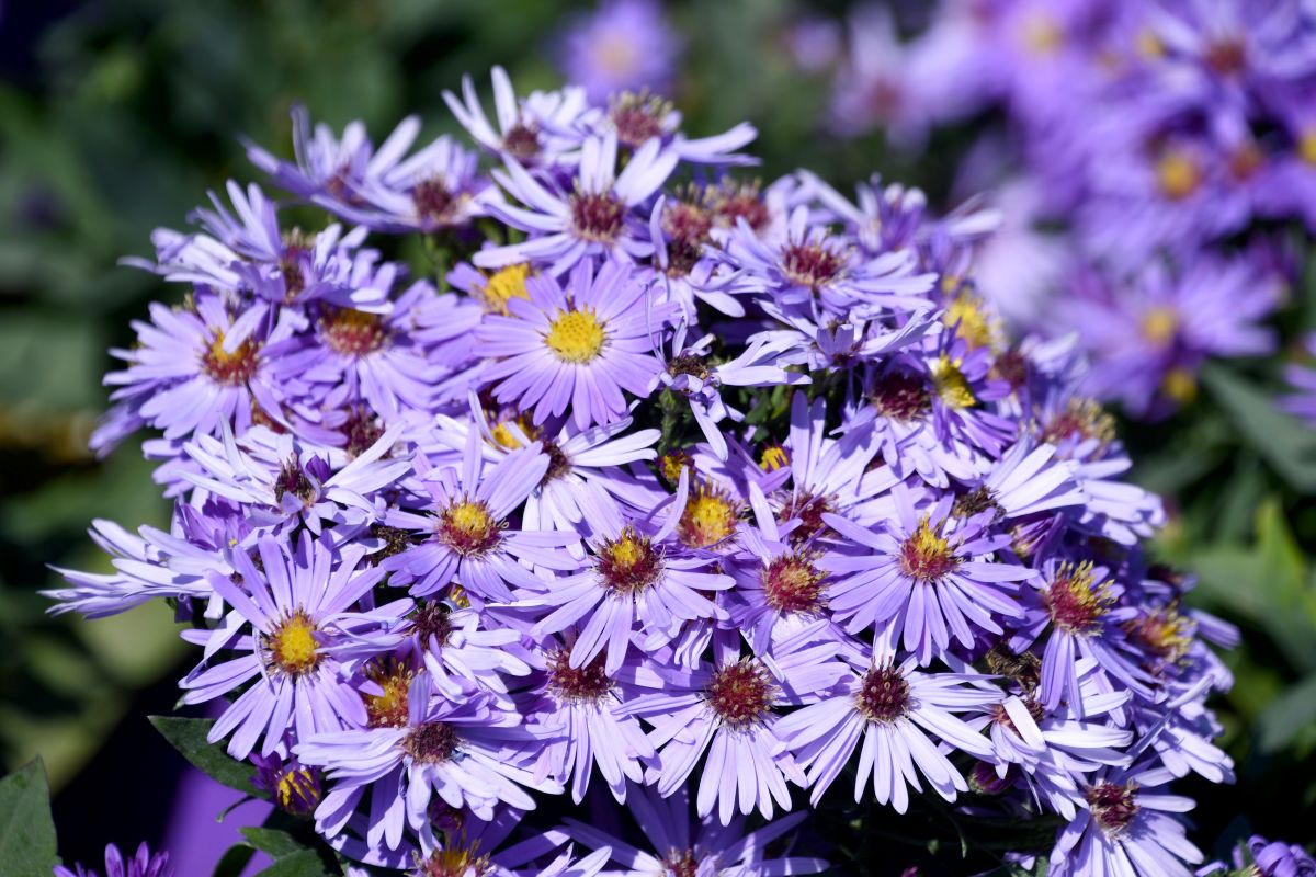 Bushy plants grow 12–15 inches tall in maturity. Deep lavender-blue flowers begin in mid-September over grayed green foliage.
