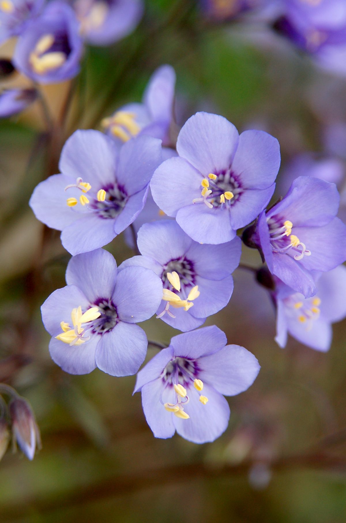 Lacy pinnate foliage emerges red and continues to hold red highlights until summer. Grape-scented blue flowers begin in May and can continue into June. Plants top out at 18–24 inches tall. Drought tolerant clumps can grow in full sun to part shade. Makes a good cut flower, too. Nice with Geum.