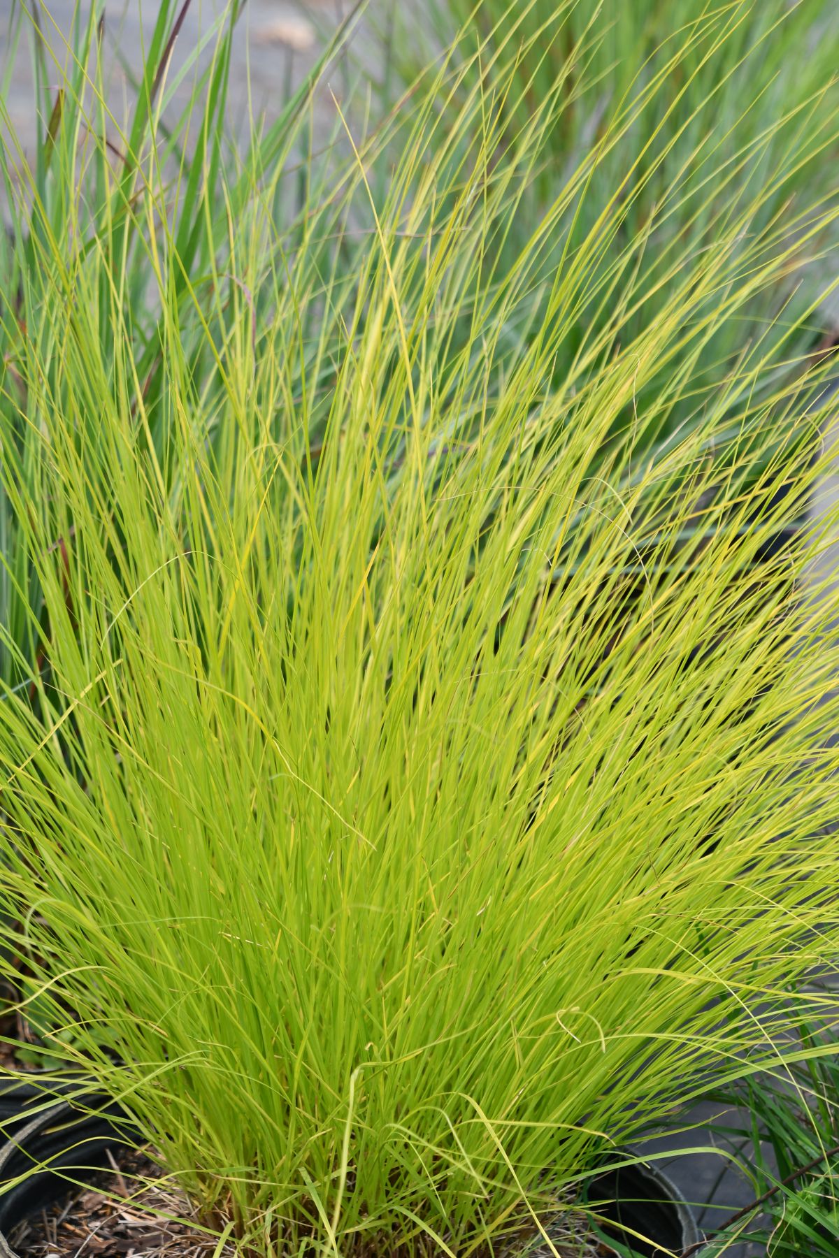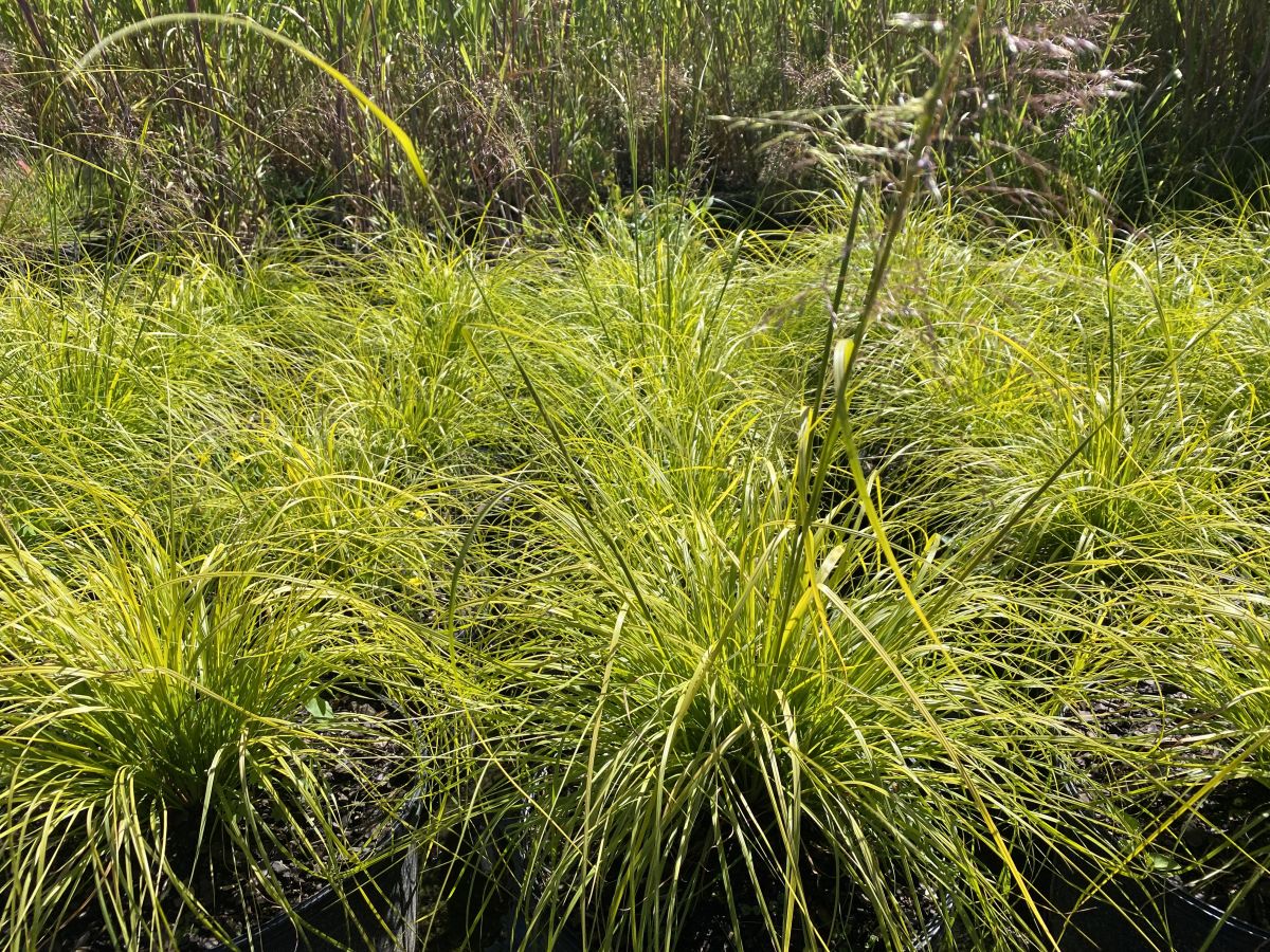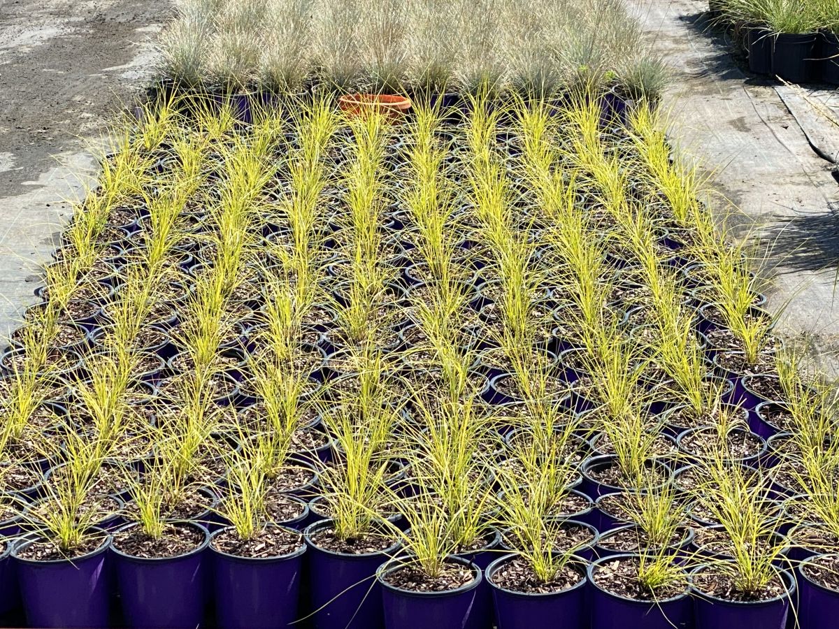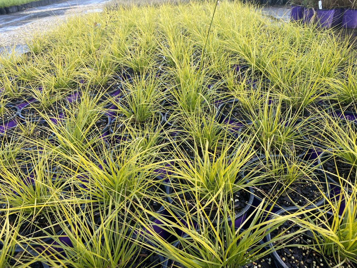 One of the showiest crops from April into July in 2024. This all gold leaf prairie dropseed has good vigor and size similar to the species. After July the foliage moves to the chartreuse side of yellow. Flower stems reach three feet tall. Adaptable plants are best in dry to well-drained soil. Foliage is brightest in full sun and lean soil.