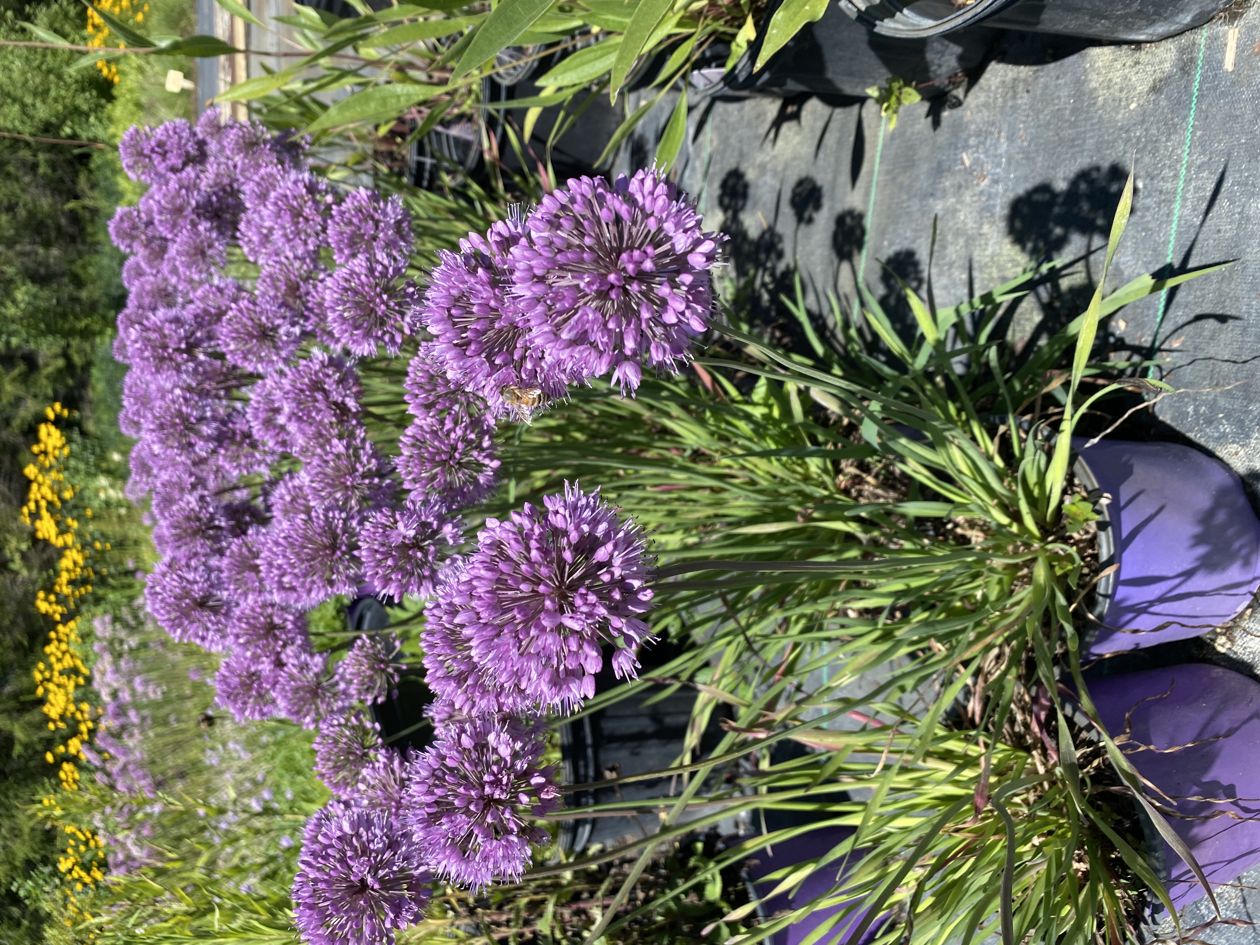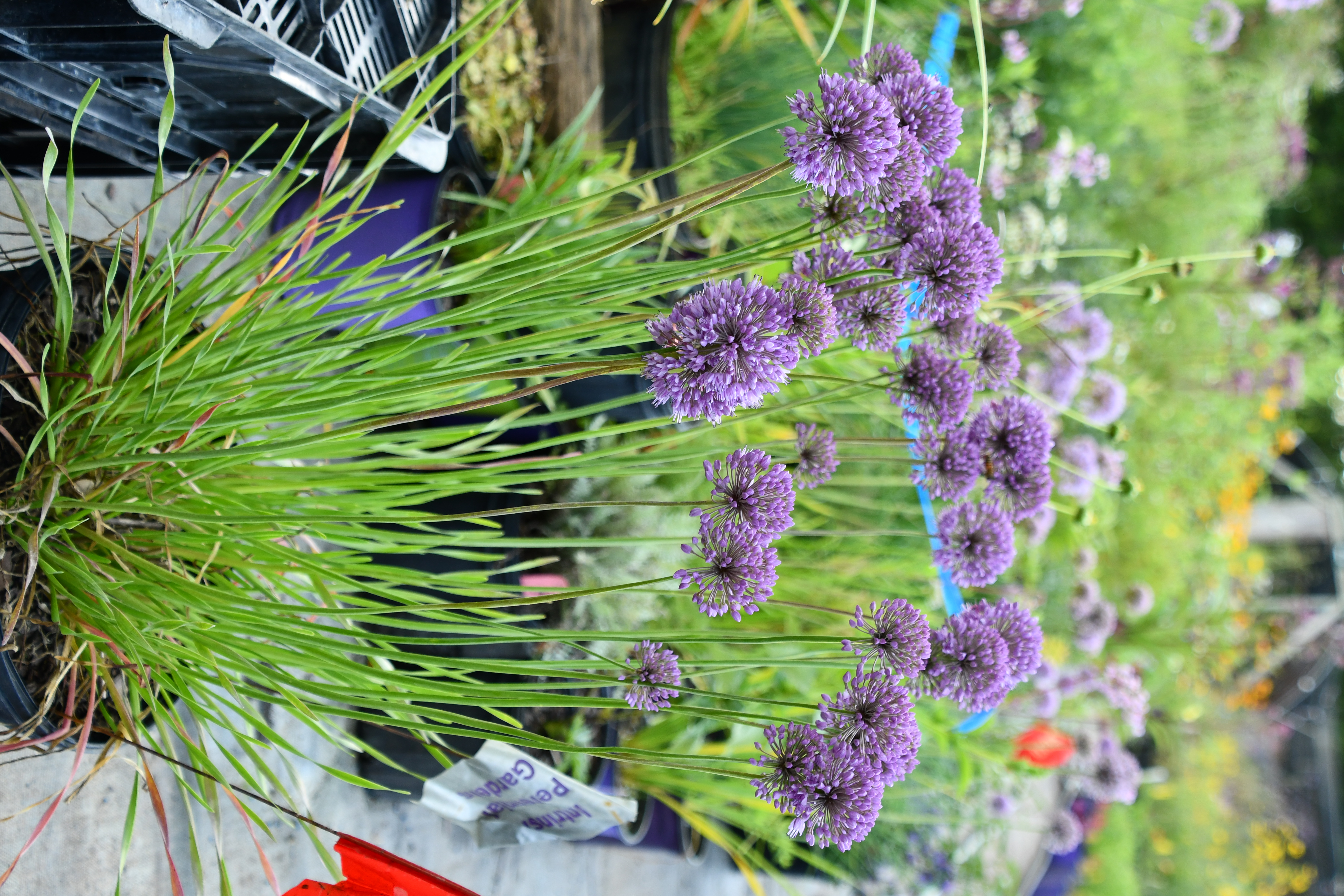 An Intrinsic Introduction, Allium x ‘Blue Moon’ PPAF has rich lavender-purple flowers late in the season that verge on blue at times. Flowers are fully two-inch balls on slightly arching 18-inch stems above gray-green foliage. Plants bloom at just the right time to fill in the late summer gap leading to fall. They prefer full sun and well drained soil.
