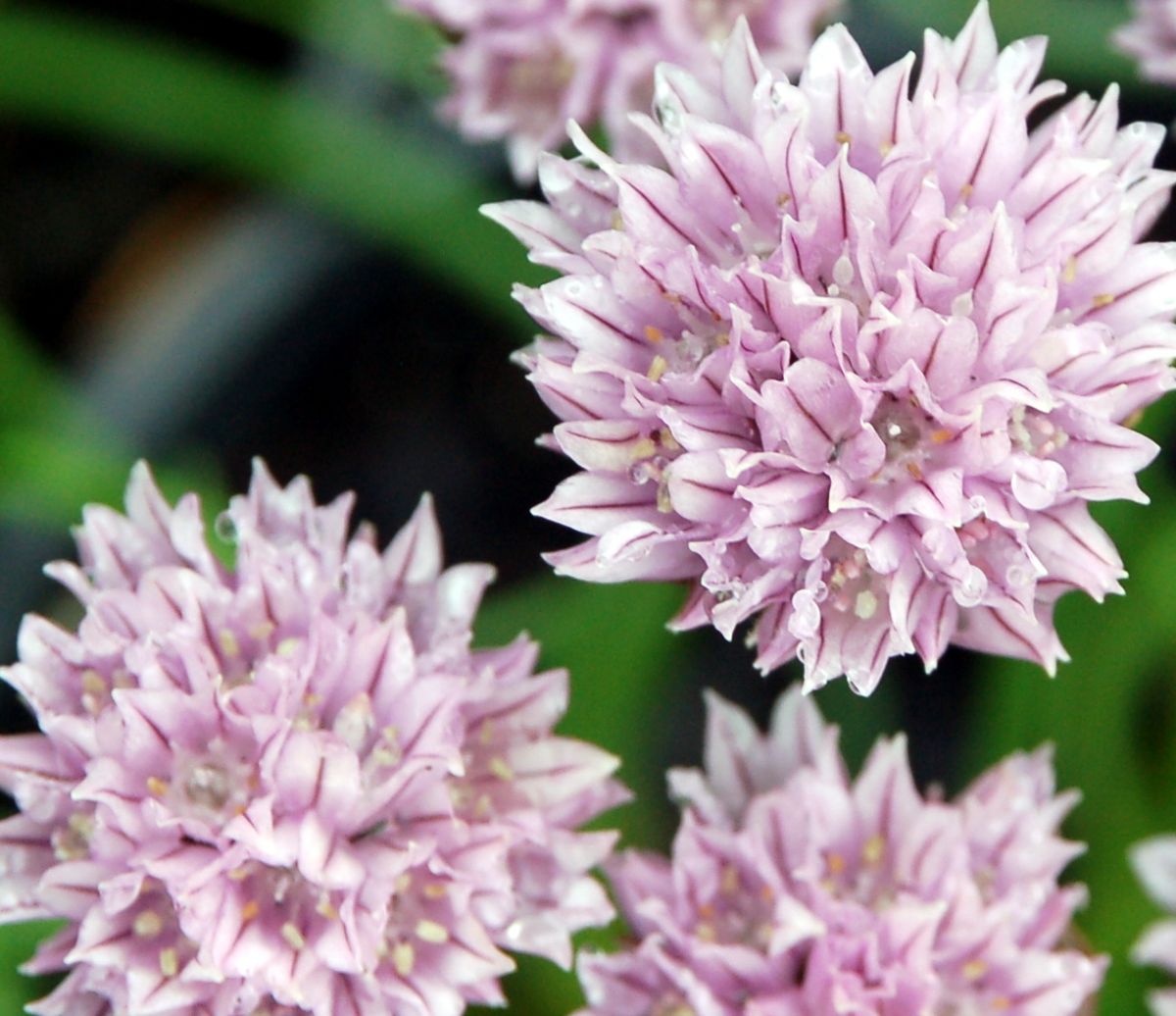 A mostly sterile chive with edible kelly green foliage all season long. Initially upright but then more relaxed, blades reach 12 to 15 or more inches long. This vigorous plant is easy to grow. Lavender purple flowers with a purple stripe down the middle of the petal are also edible, and are held on 12-inch or longer stems. Beginning as round buds the flowers open to one inch wide. Full sun is preferred. Average to dry soil.