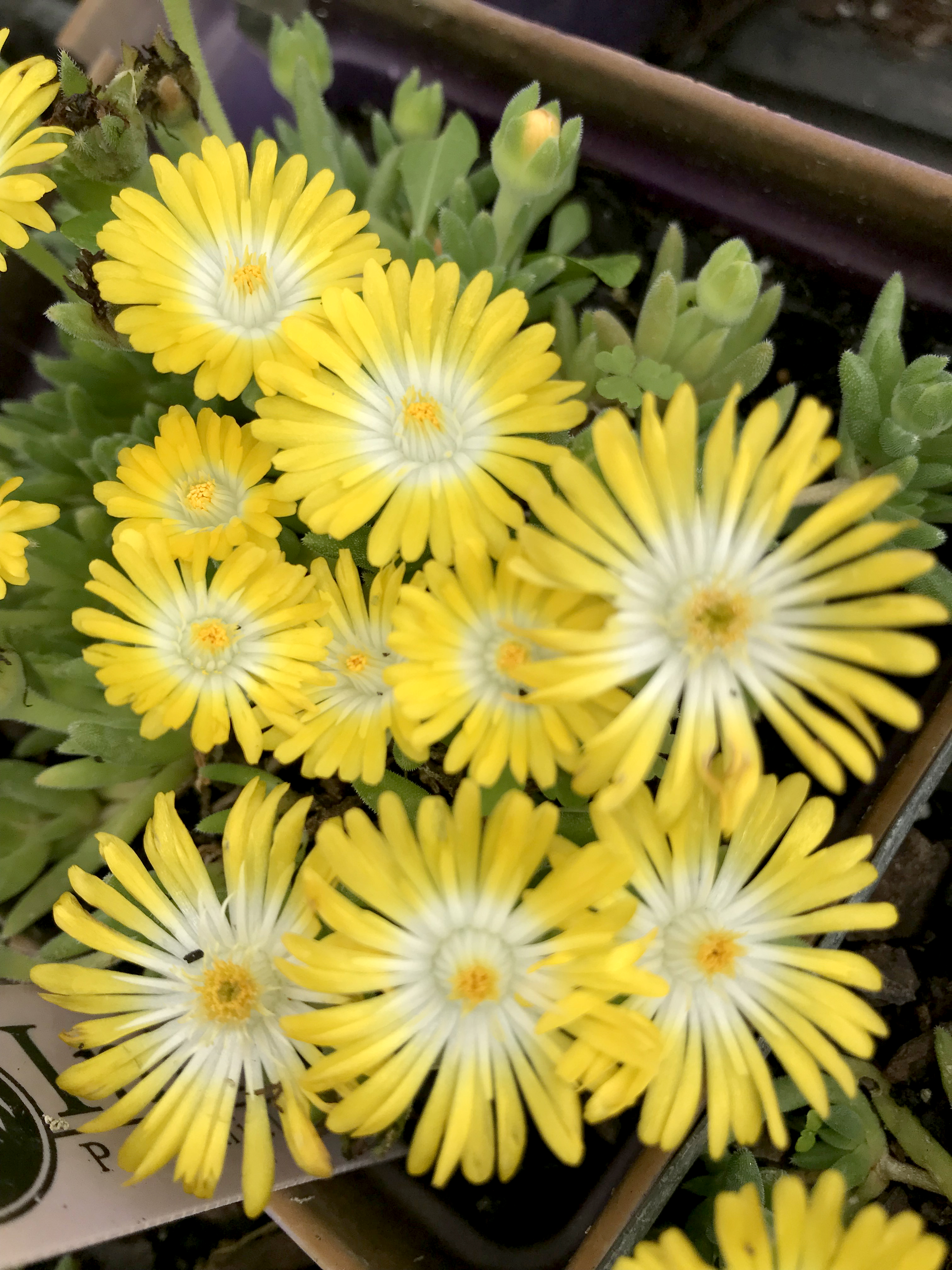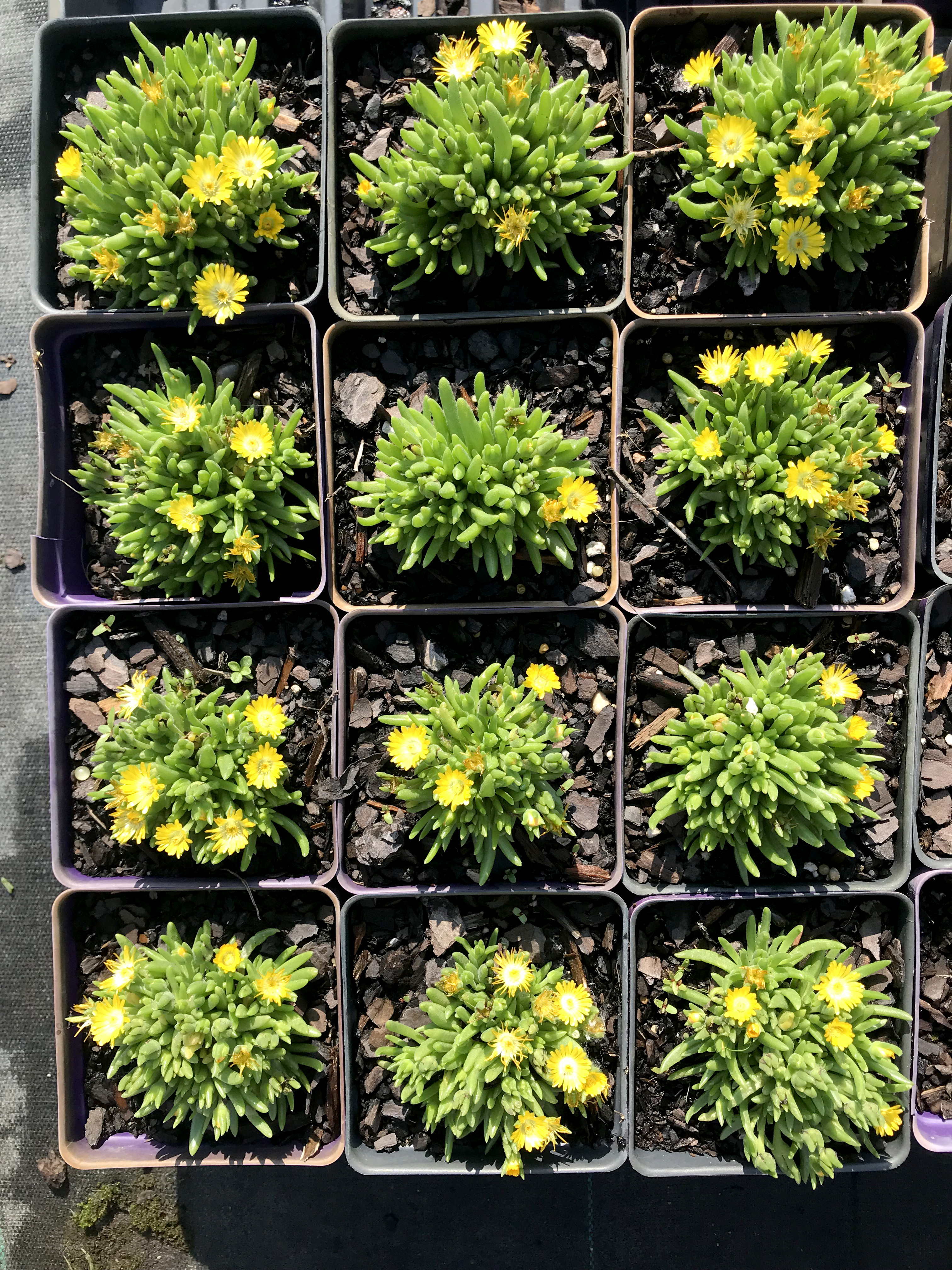 This is a clear yellow sport of 'Orange Crush'. Nearly ground-hugging, succulent fingered foliage requires sharp drainage especially in winter. Zones 5 to 9. Peak bloom of the yellow and white centered one-inch flowers begins in April–May and continues into June. Full sun is best.