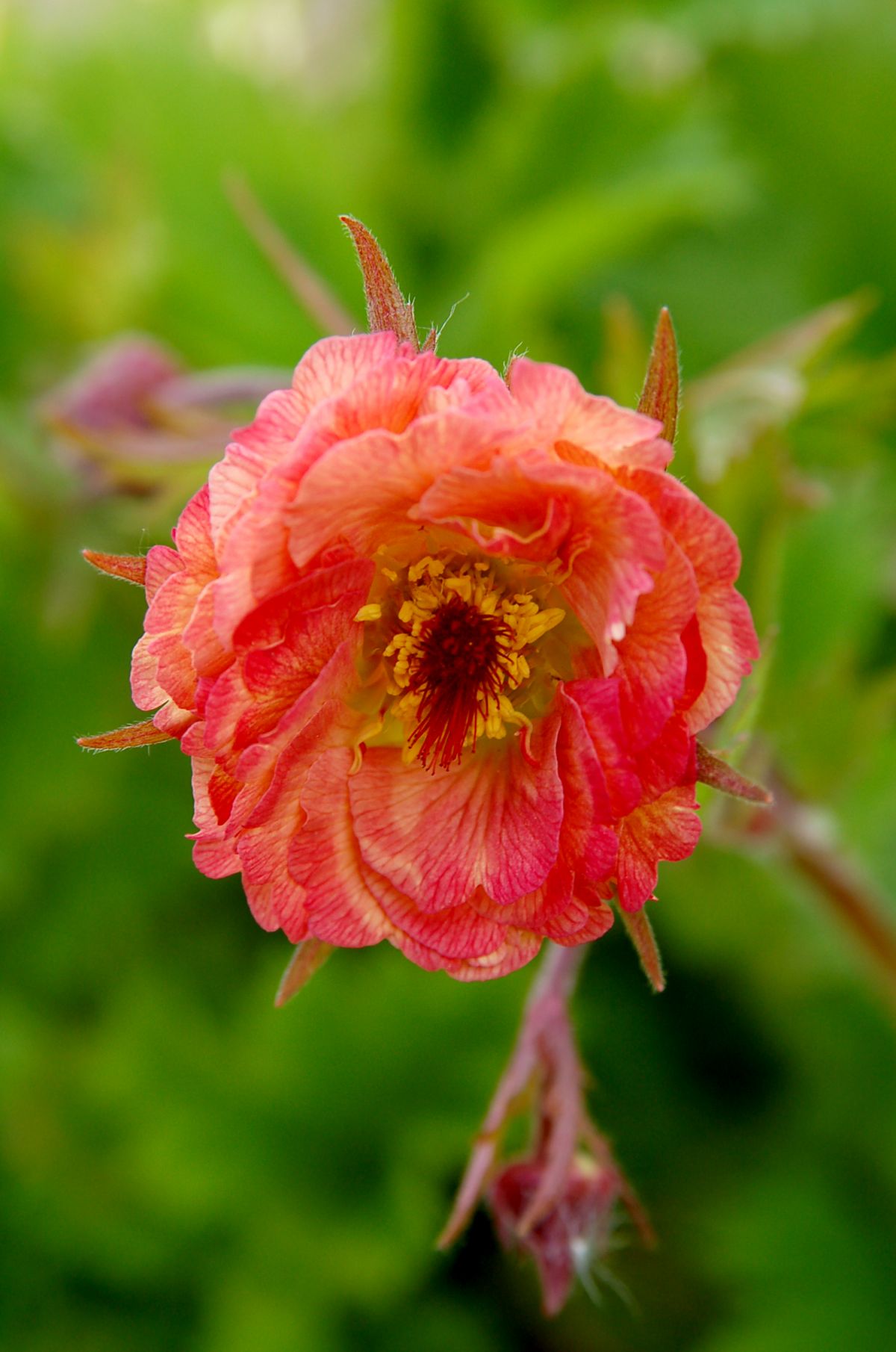 Heavy blooming, vigorous plants have single to semi-double blooms of vermillion red fading to peachy-pink in May. Clumping mounds reach just over one inch wide, topped by 18-inch burgundy stems. Full sun; moist to average soil.