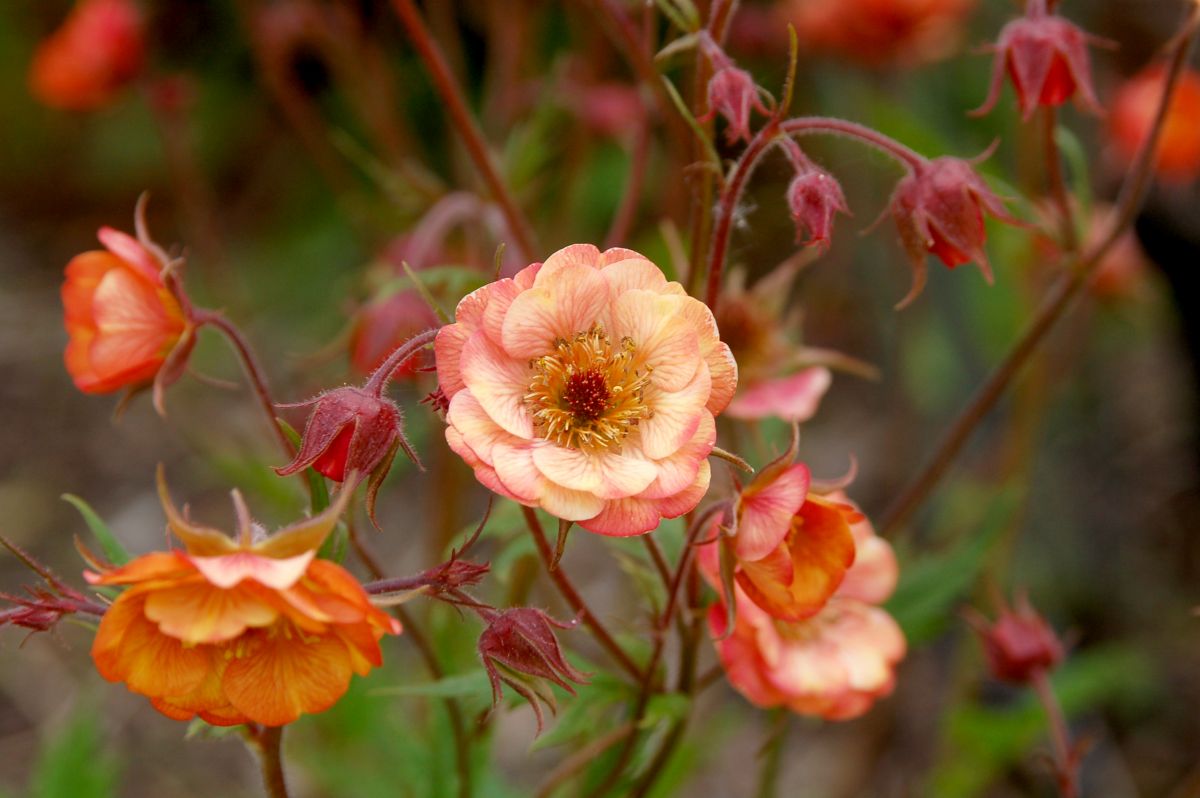 A deeper colored red sport of 'Mai Tai', it has more vermillion to orange semi-double flowers. Red stems and buds grow to 18 inches. Full sun; rich moist soil.