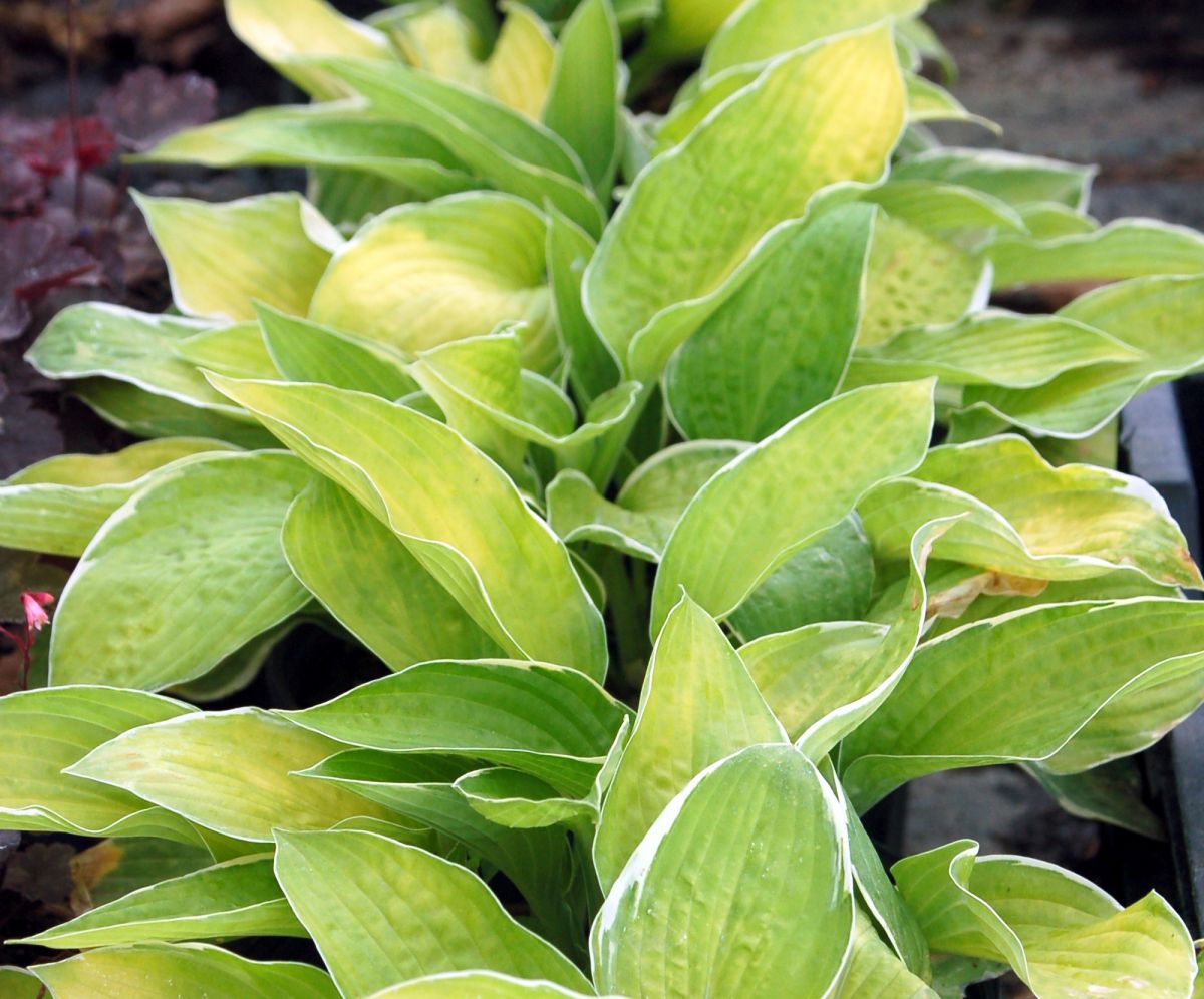 A combination of two of the best hostas. This sport likely came from 'Francee' and nearly mimics another one of its great relatives, 'Gold Standard'. Lightly puckered veined leaves emerge near apple green and quickly begin to fade to gold at the tips, eventually becoming entirely gold except for the mostly thin white edge, although sometimes a deep green streak appears. Green new foliage continues to emerge, giving the whole plant a wave of green-to-gold colors highlighted by the edges! Part sun to shade; rich soil.