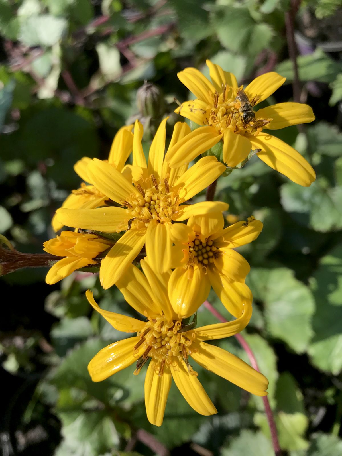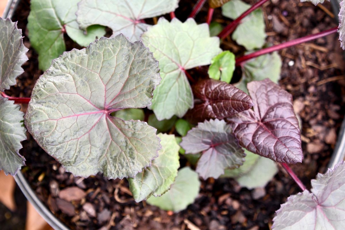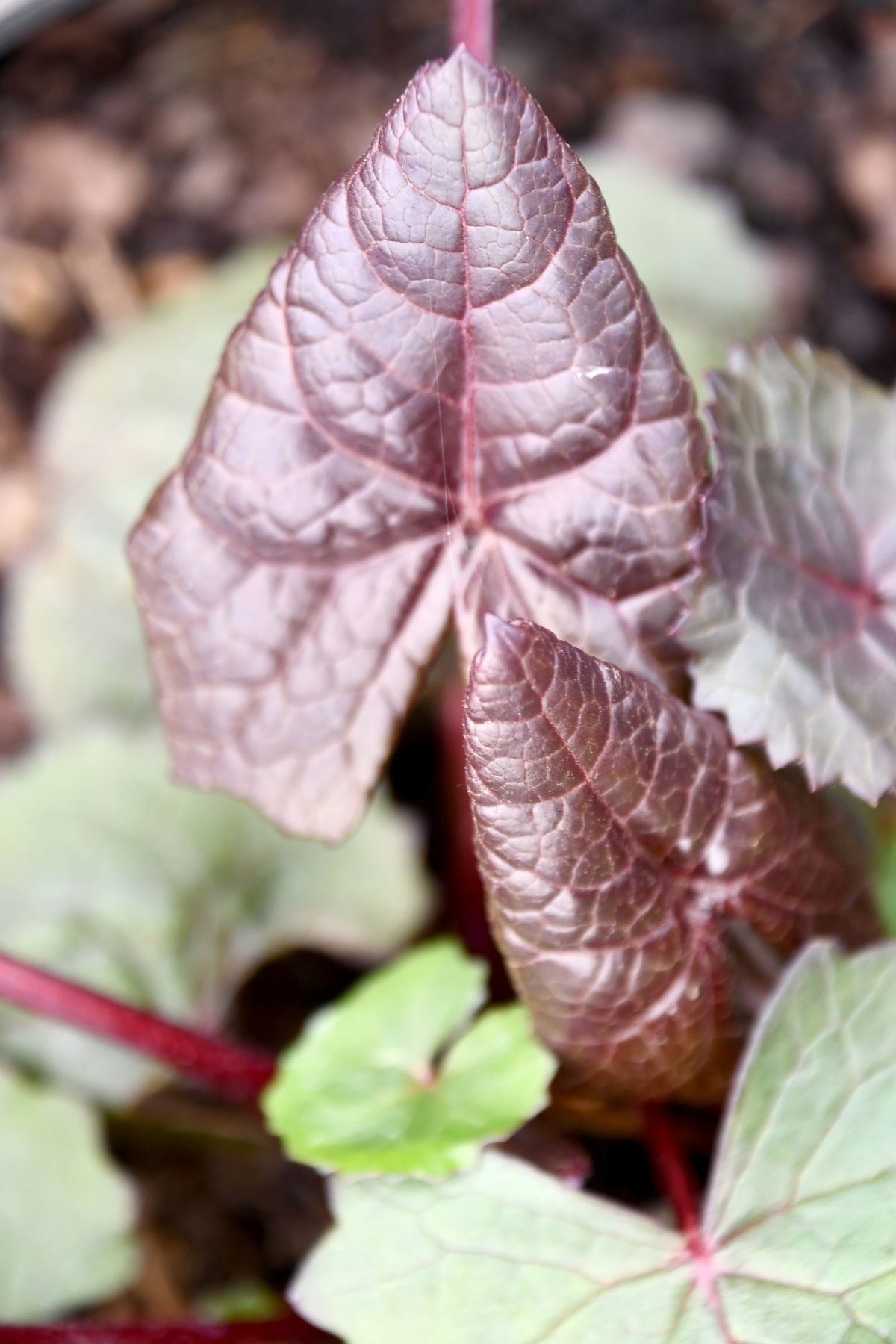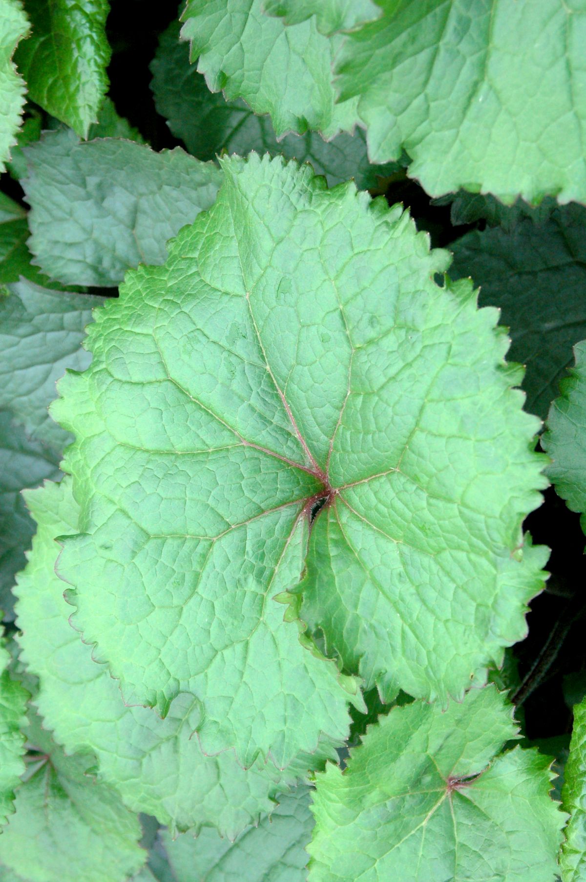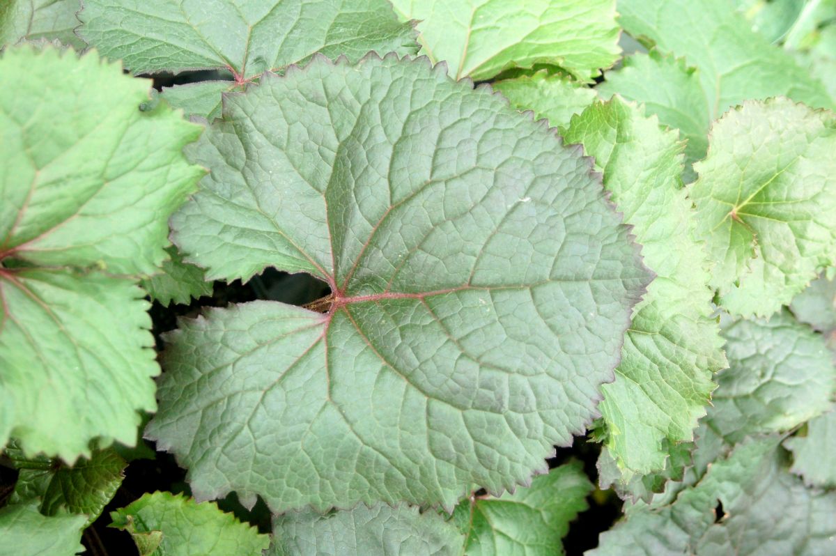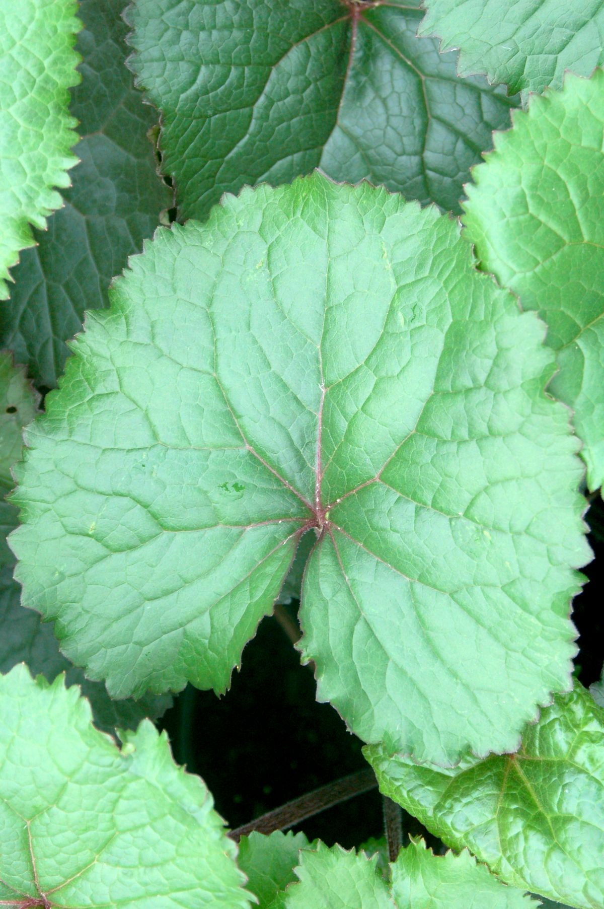 After many years of observation this hybrid stands out to us. Matte green foliage with new leaves emerging lighter green and deepening with age gives the substantial plants more depth. Hybrid vigor, and rhubarb red stems hold clustered gold flowers on four-inch stems in July. Part shade with rich moist soil.