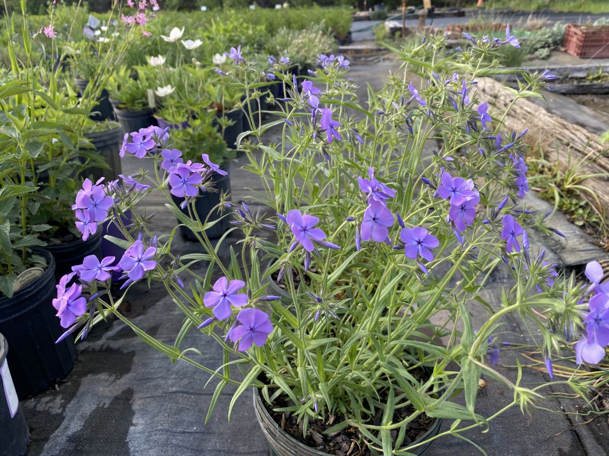 Our second introduction from Jake Letmanski. A hybrid of divaricata and our pilosa 'Bungalow Blue'. Lavender flowers have strong blue overtones depending on light and temperature. As cut flowers they do turn blue. Fragrant blooms begin appearing in May on 12–15 inch thin stems with pubescent foliage. Full sun, but takes part shade, too.