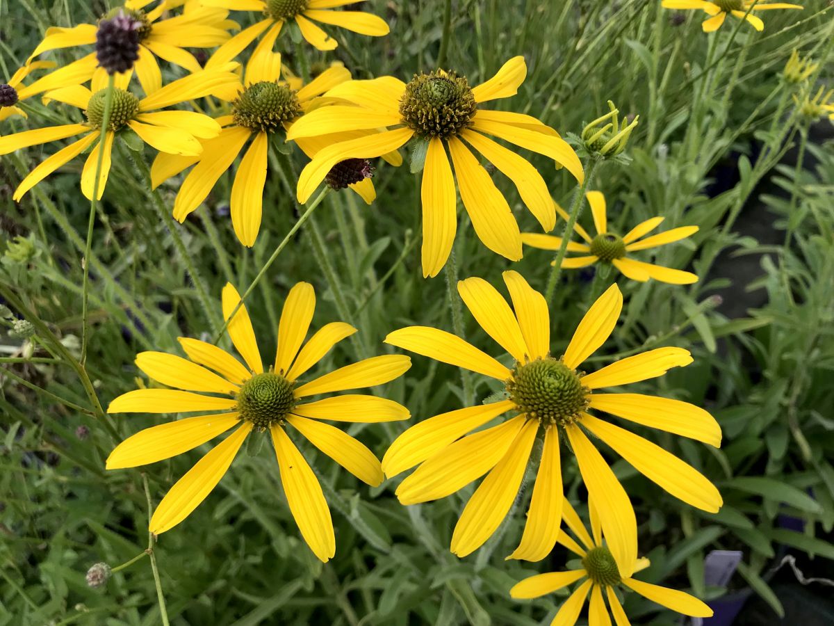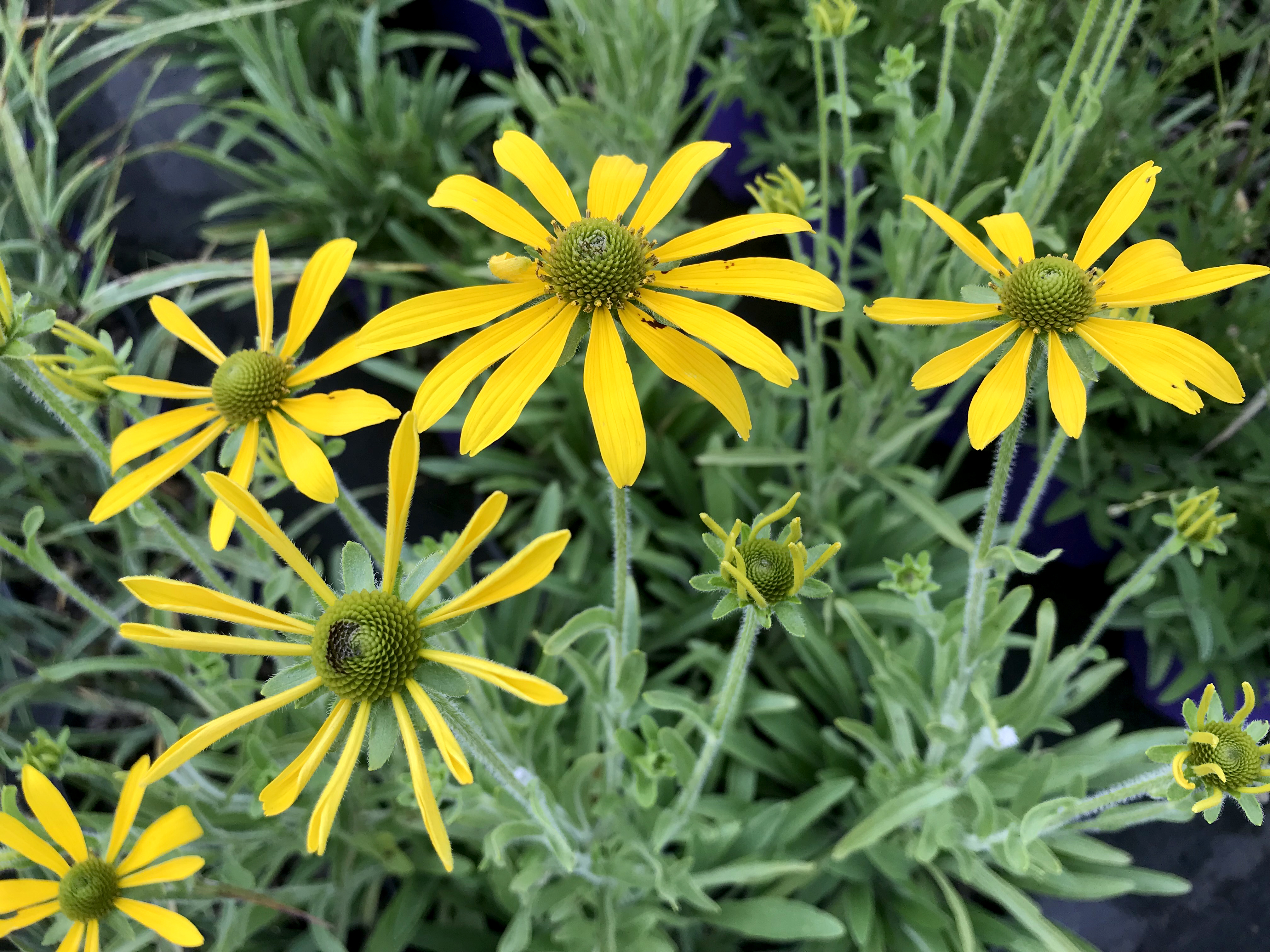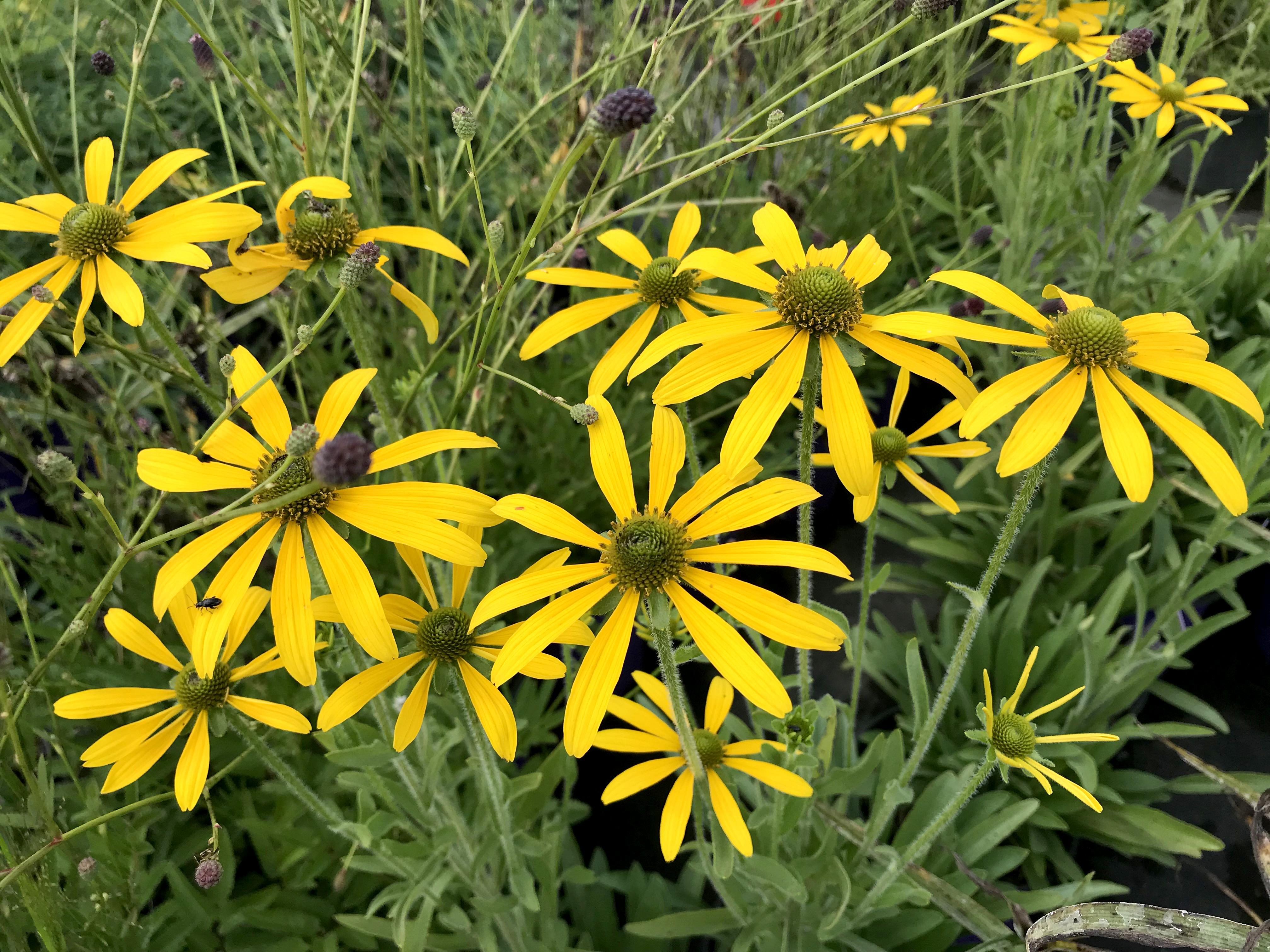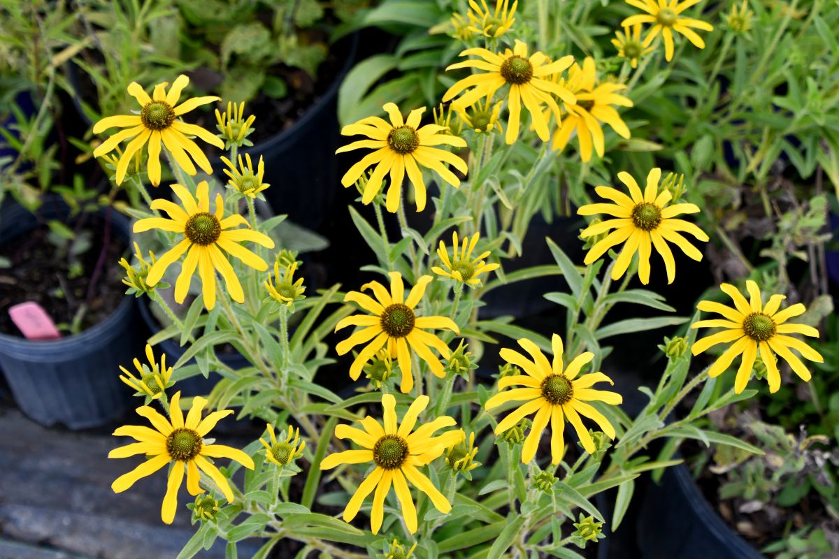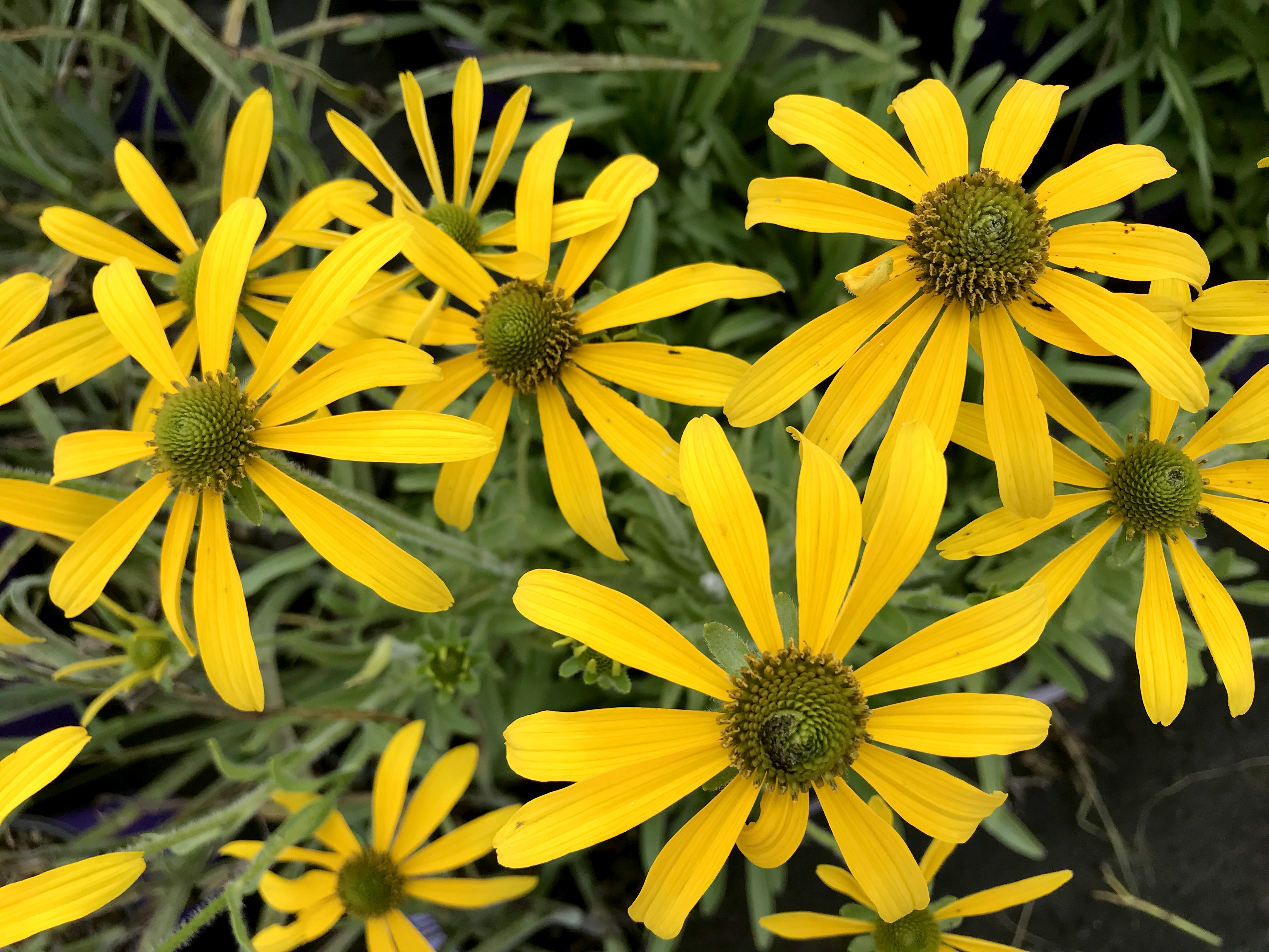 A new look in rudbeckia, this one begins with green-eyed flowers softening to chartreuse-yellow and eventually turning brown. Upright plants have a mounding habit with tall stems rising above thin-leaved rosettes of foliage. Average to dry soil is best.