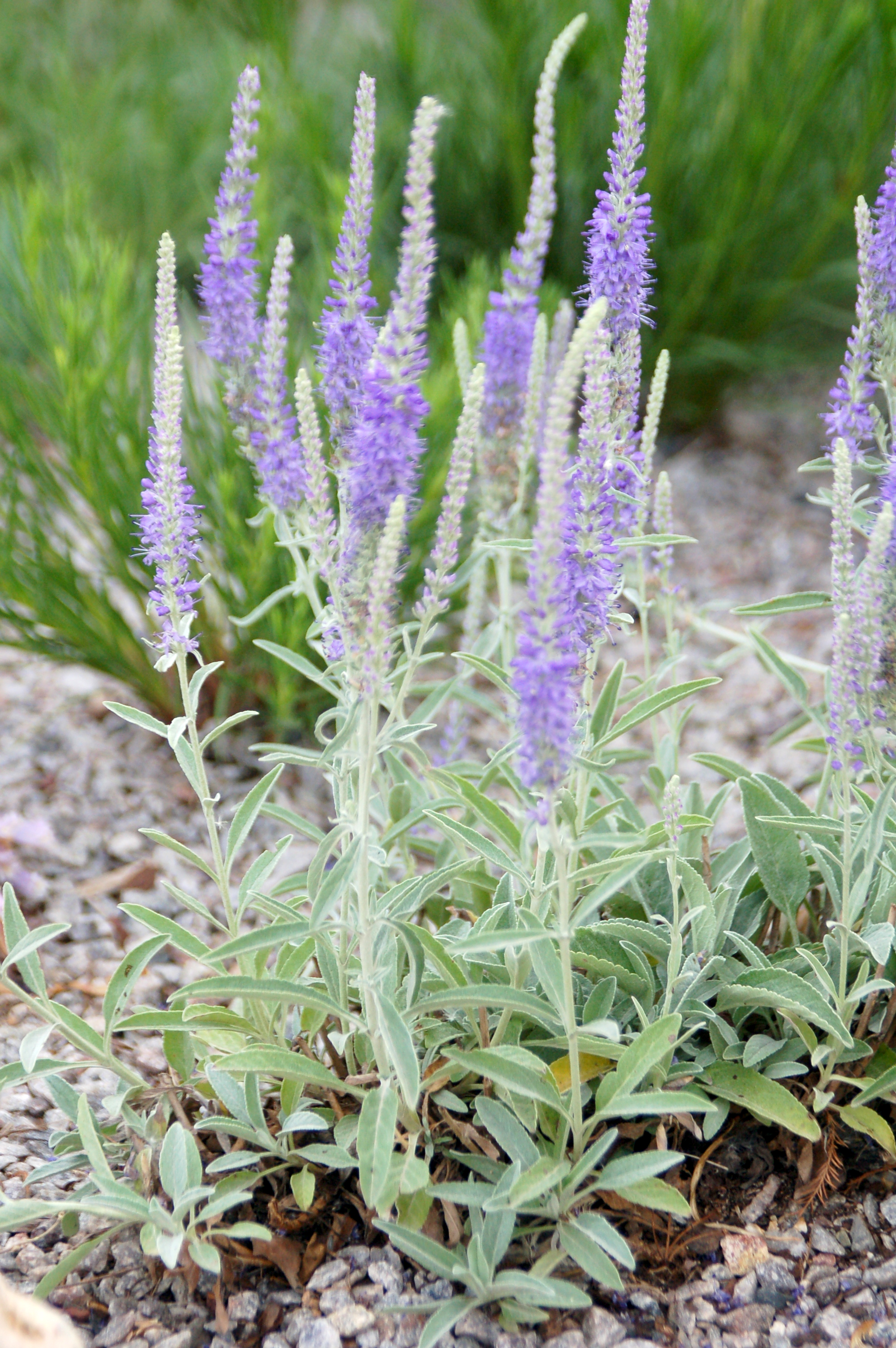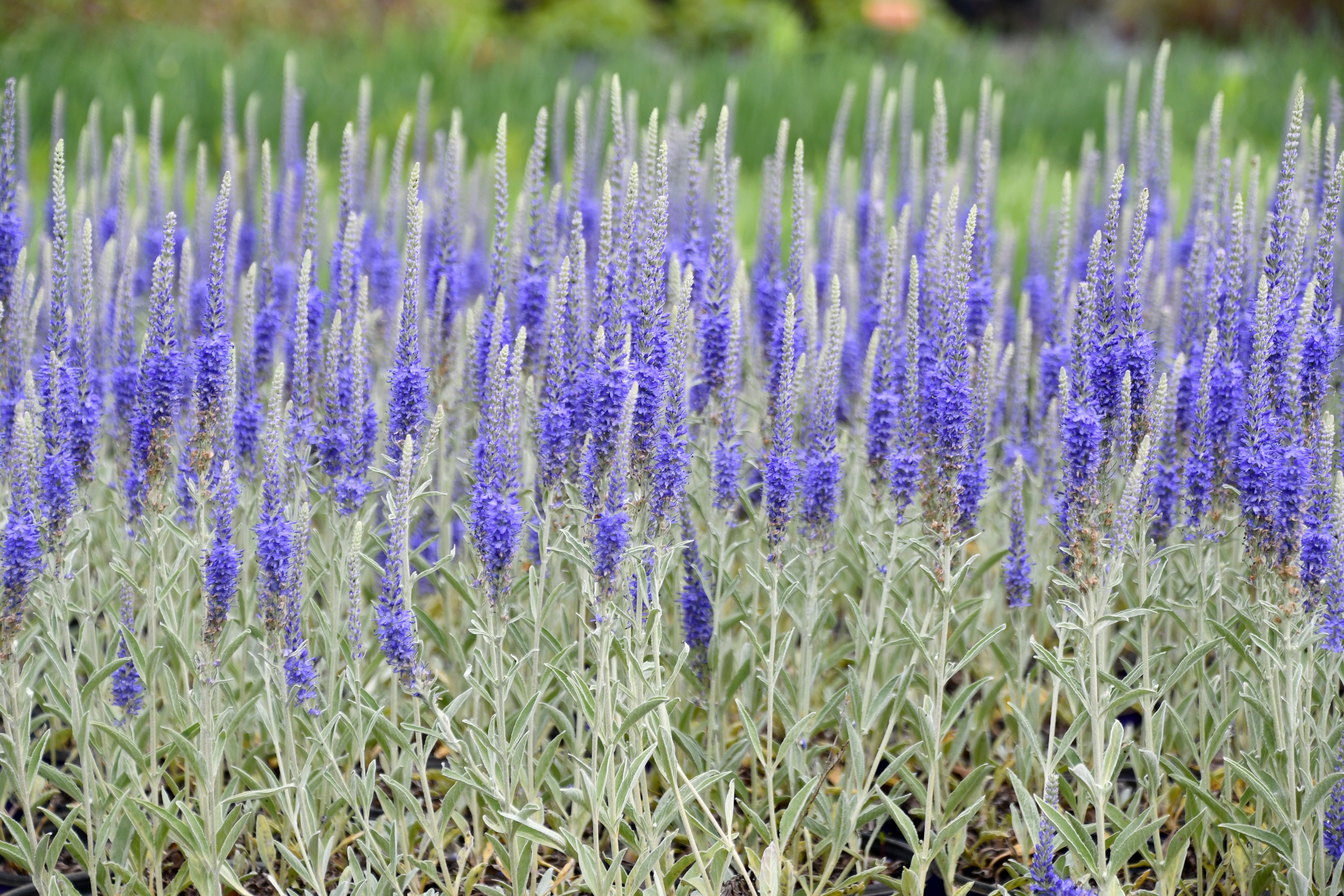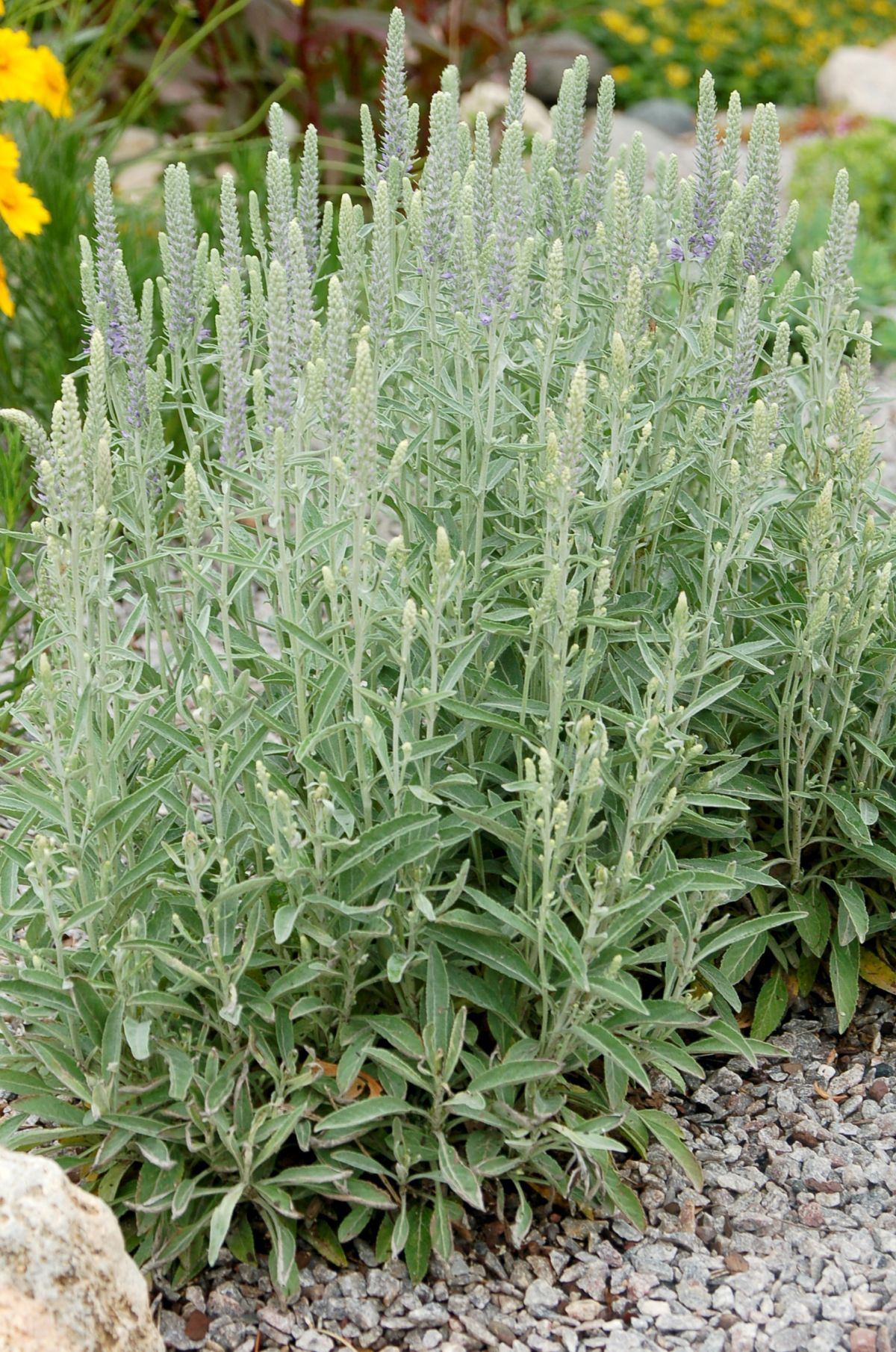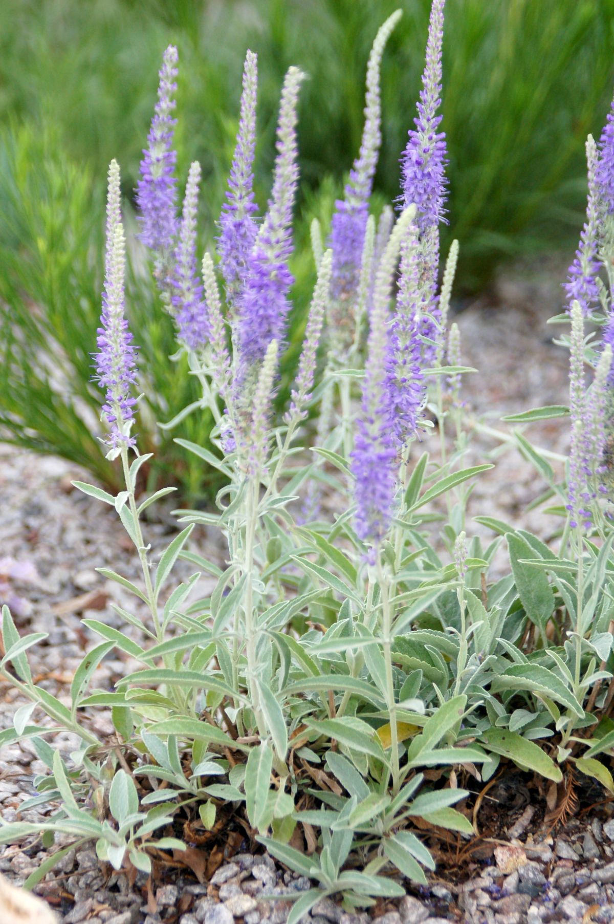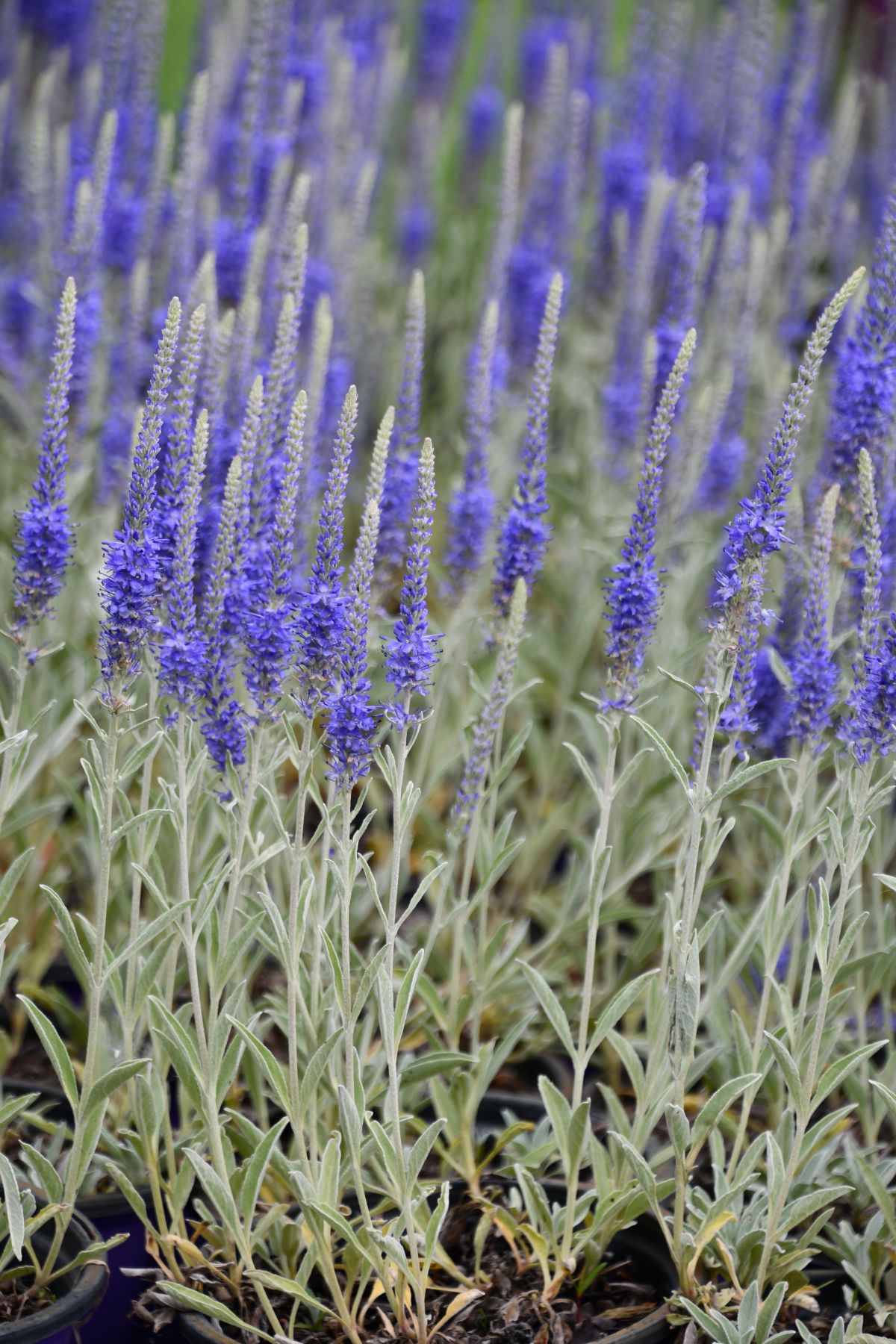 Selected for vigor and longevity in the garden. Typically the species requires sharp drainage but this selection is more adaptable to heavy soil and moist conditions, though well-drained soil is ideal. Clumps of silvered foliage are topped by numerous spikes of vivid sky blue flowers. Pairs nicely with Geranium sanguineum.