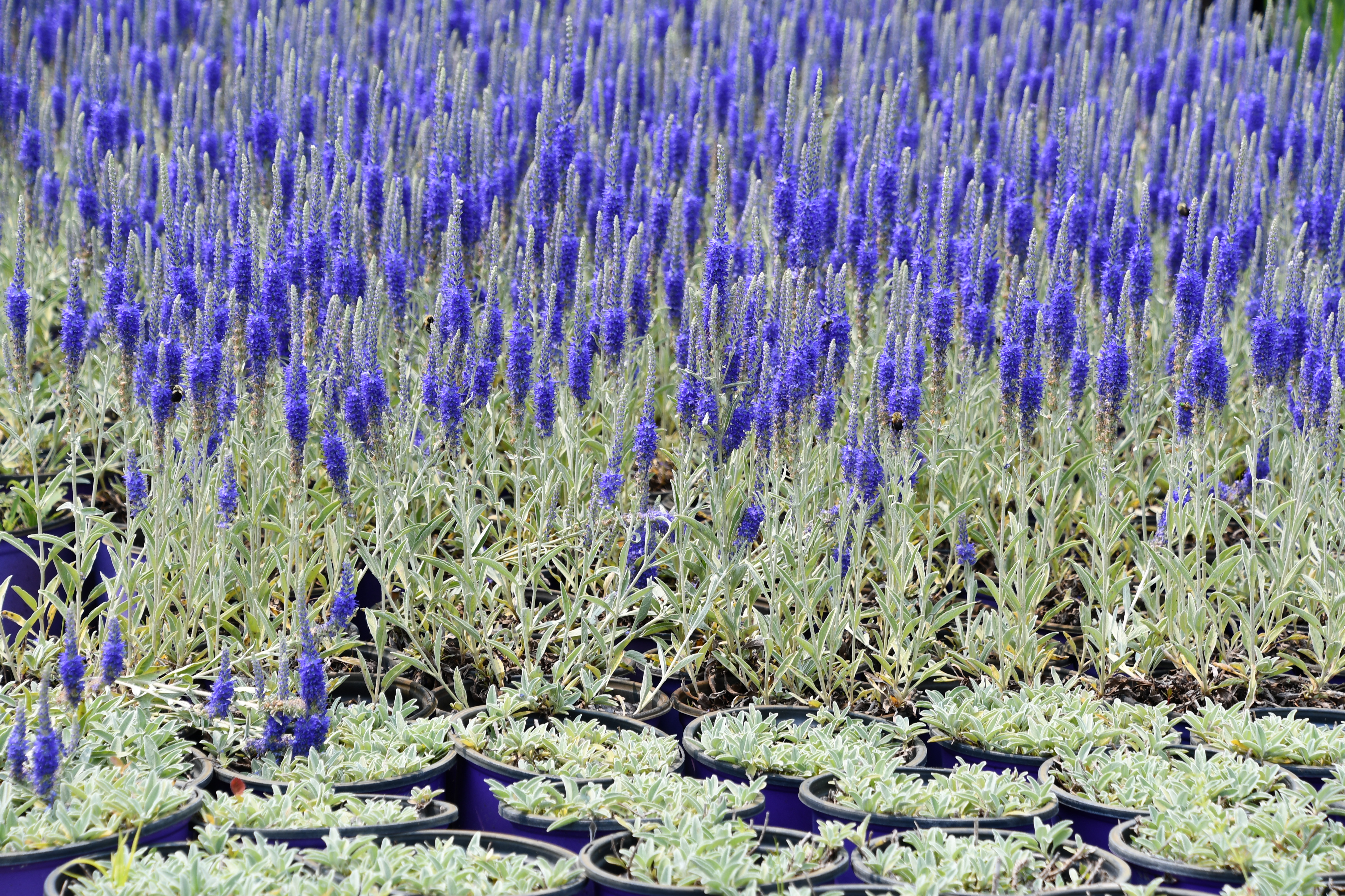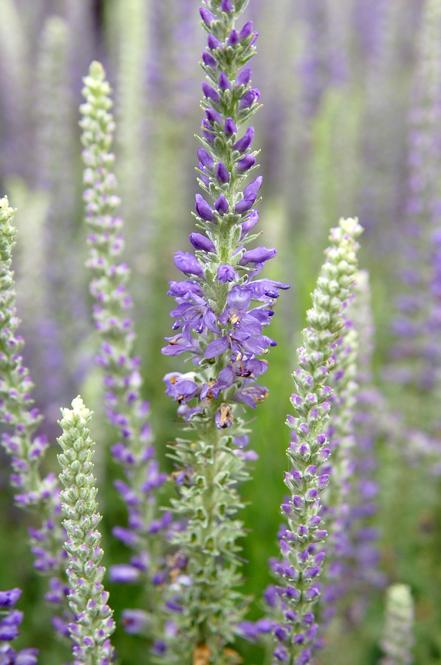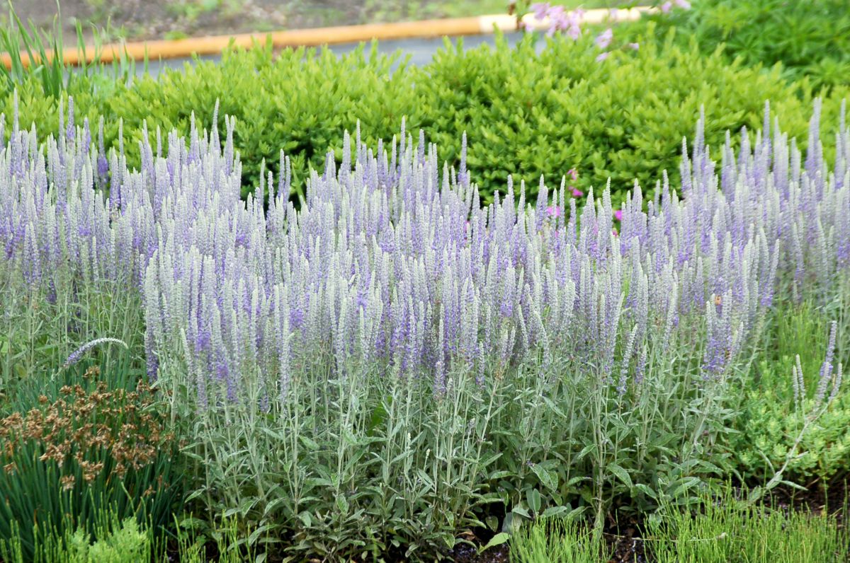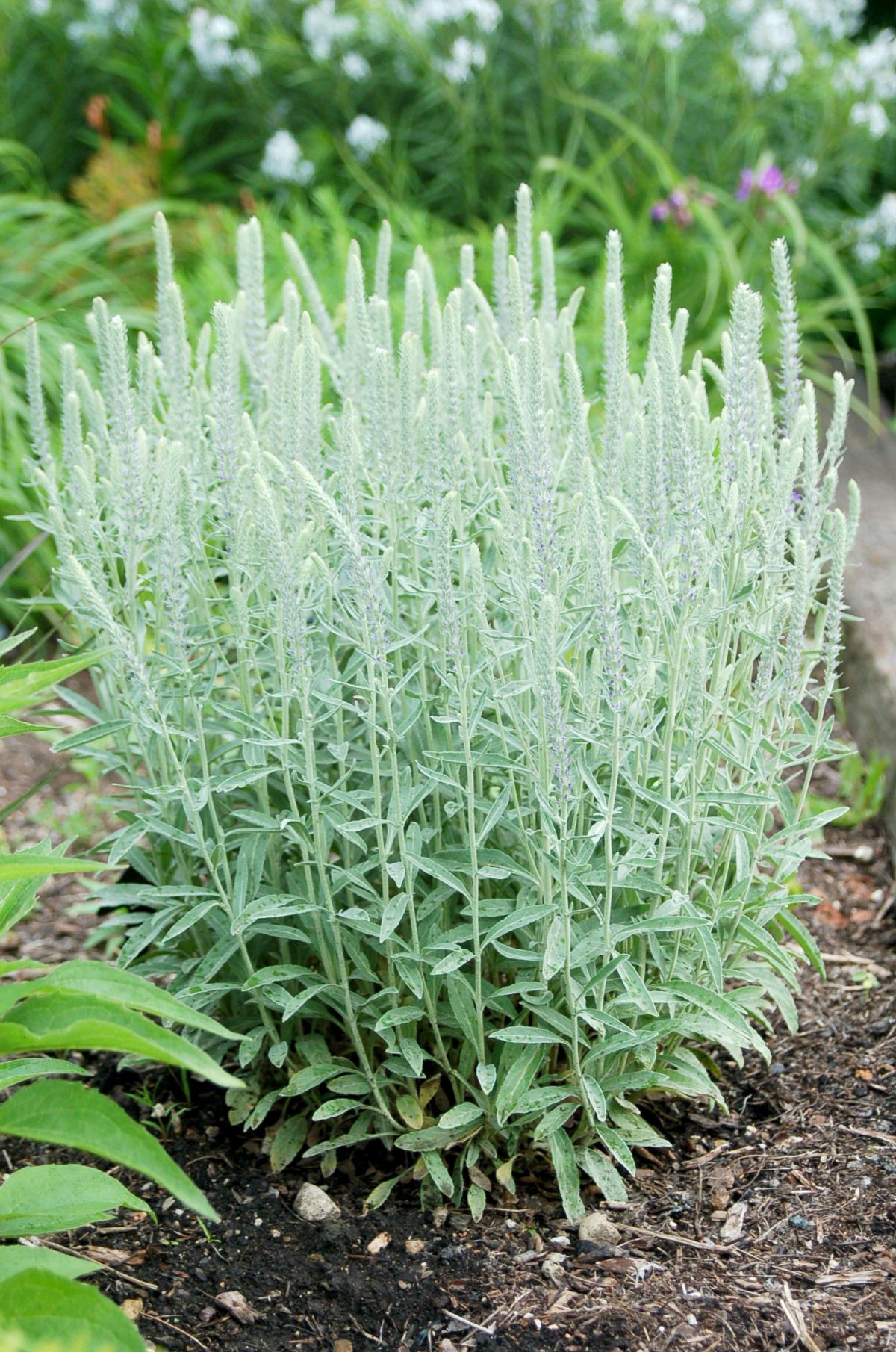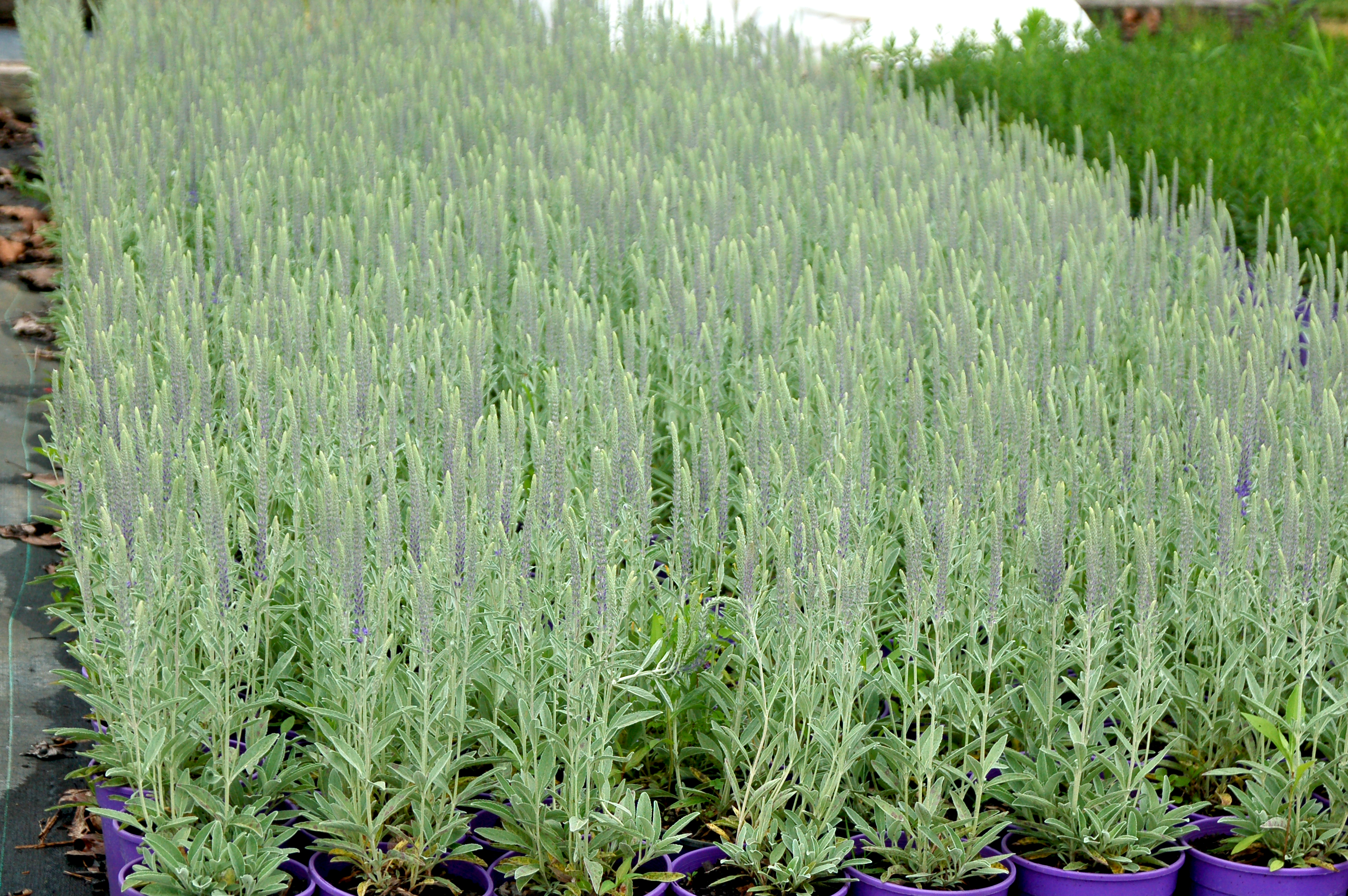 Selected for vigor and longevity in the garden. Typically the species requires sharp drainage but this selection is more adaptable to heavy soil and moist conditions, though well-drained soil is ideal. Clumps of silvered foliage are topped by numerous spikes of vivid sky blue flowers. Pairs nicely with Geranium sanguineum.