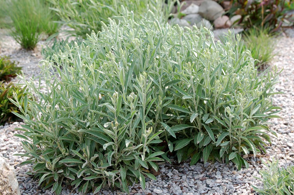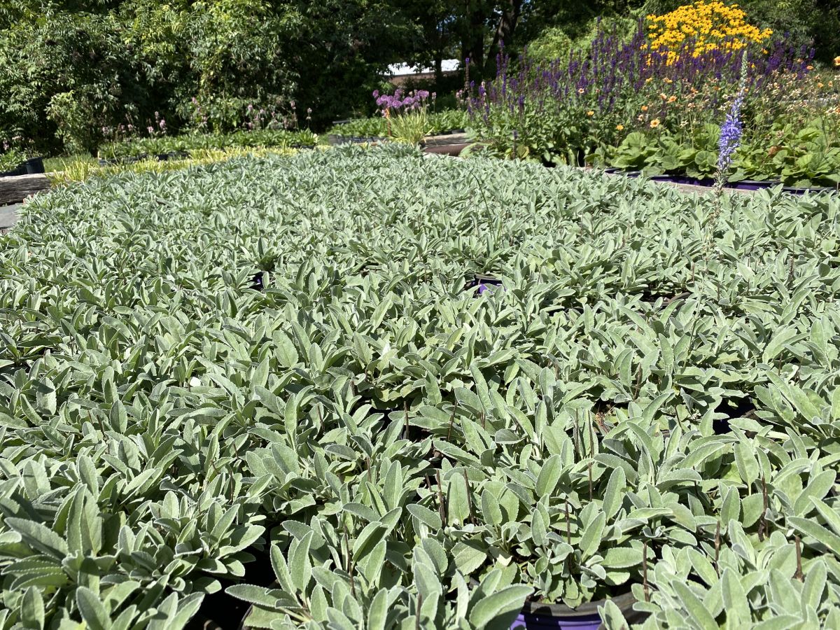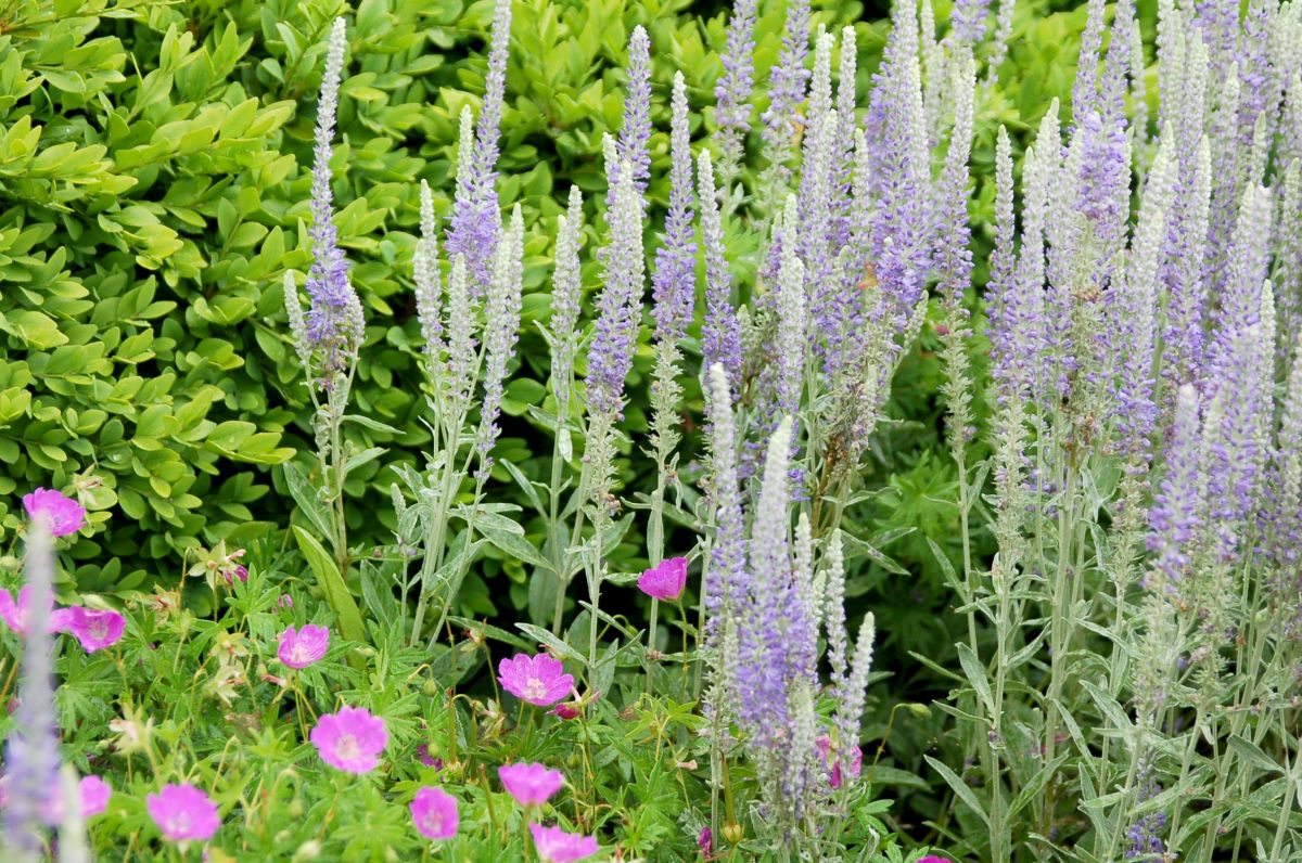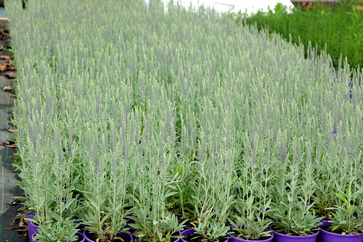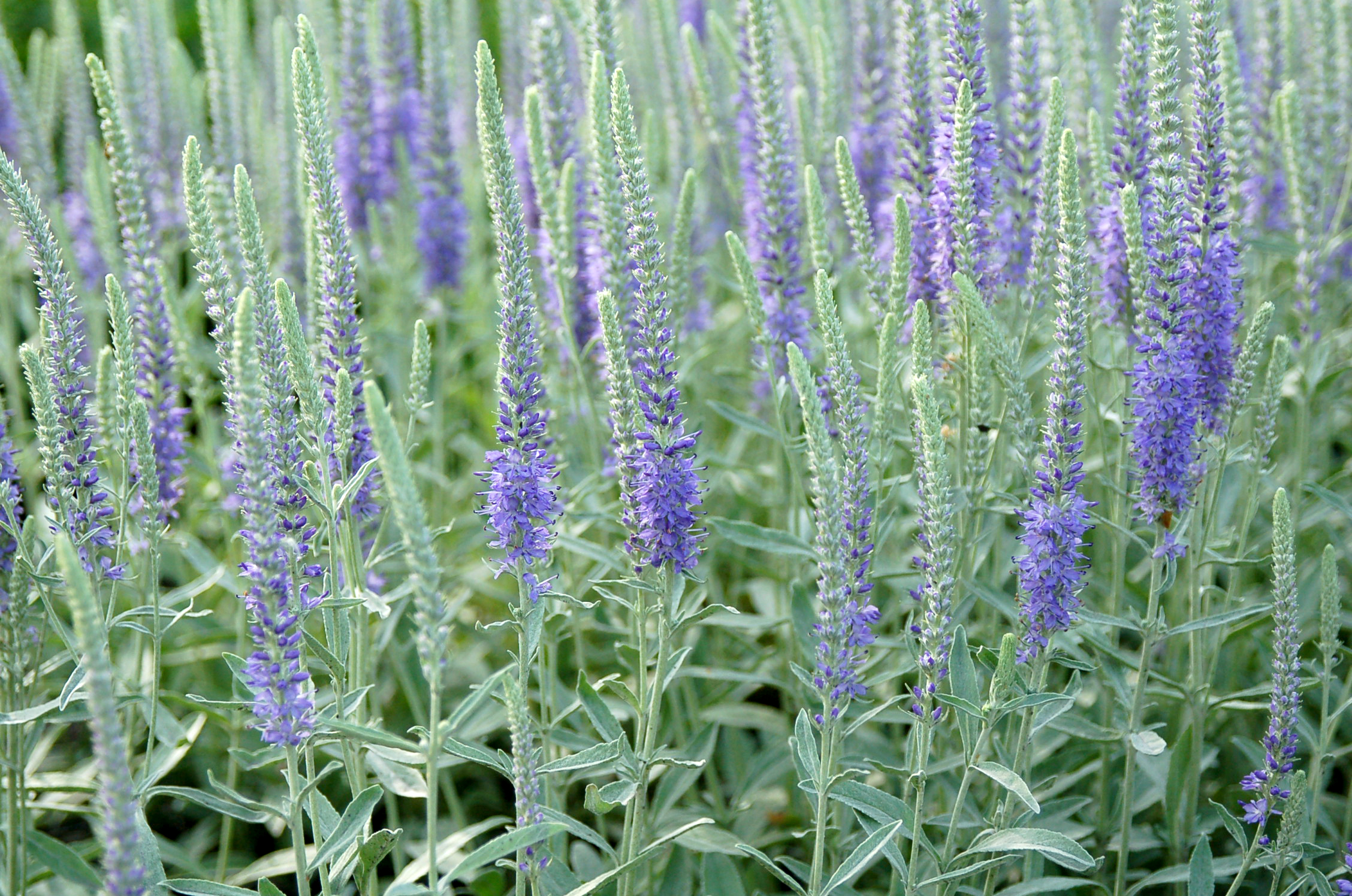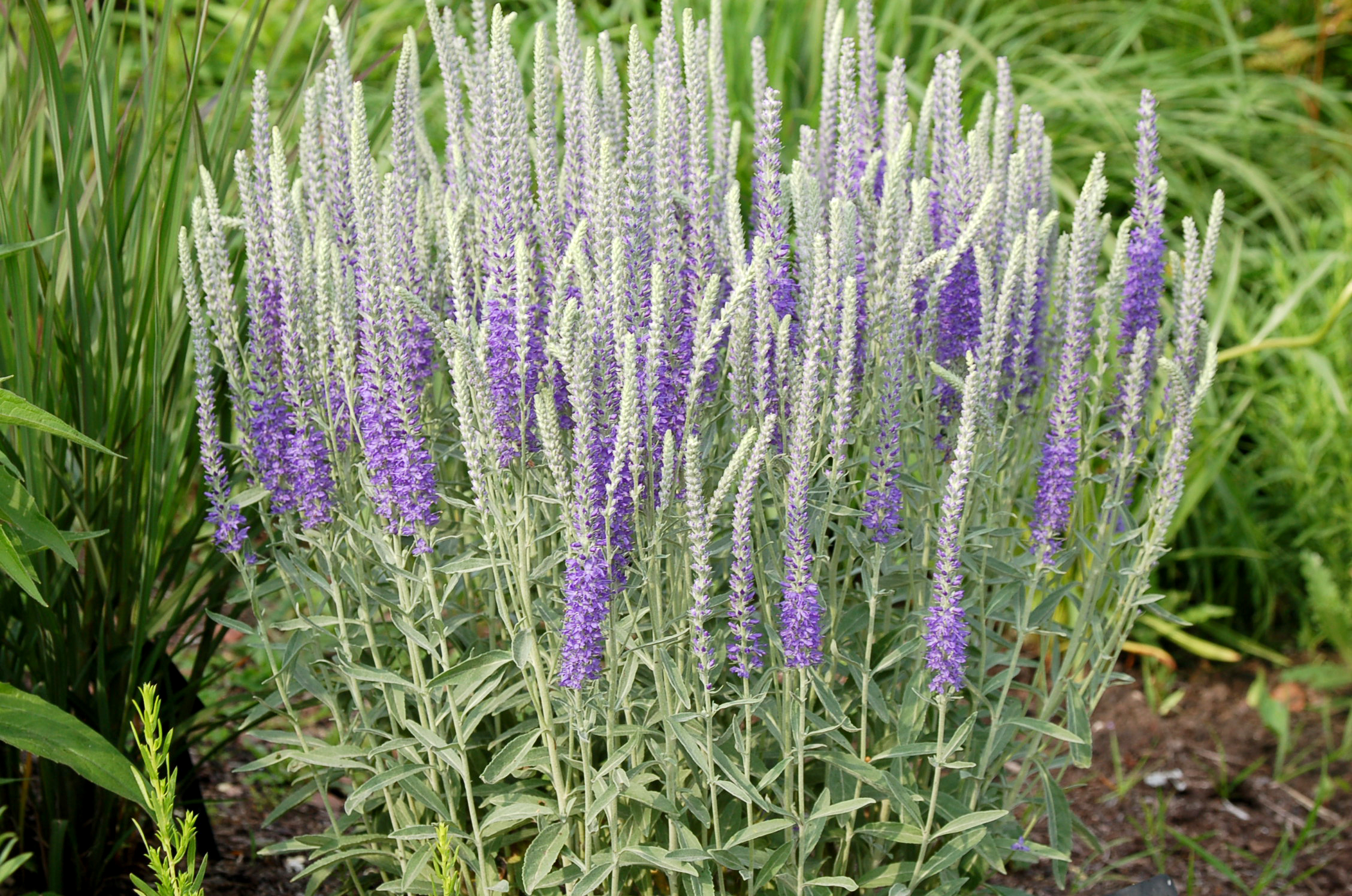 Selected for vigor and longevity in the garden. Typically the species requires sharp drainage but this selection is more adaptable to heavy soil and moist conditions, though well-drained soil is ideal. Clumps of silvered foliage are topped by numerous spikes of vivid sky blue flowers. Pairs nicely with Geranium sanguineum.