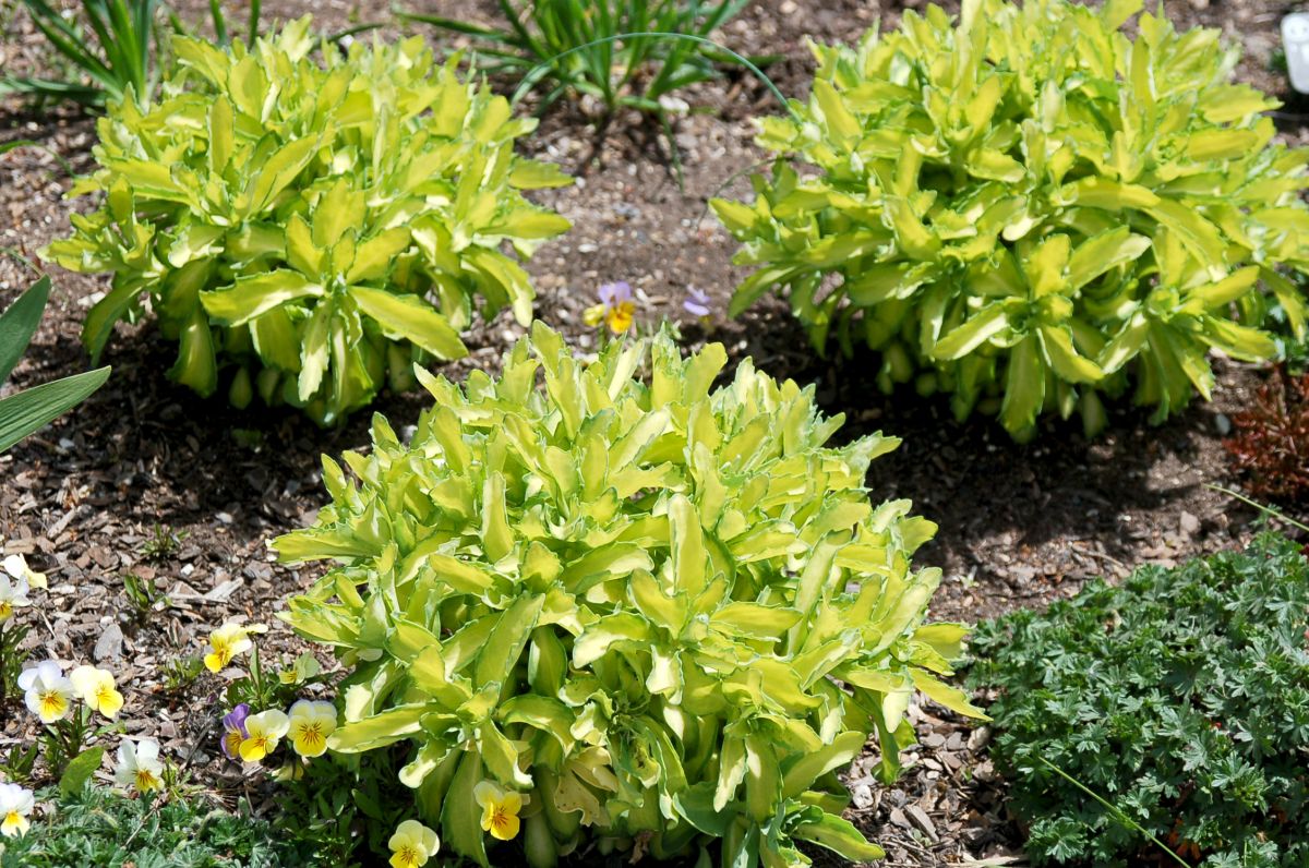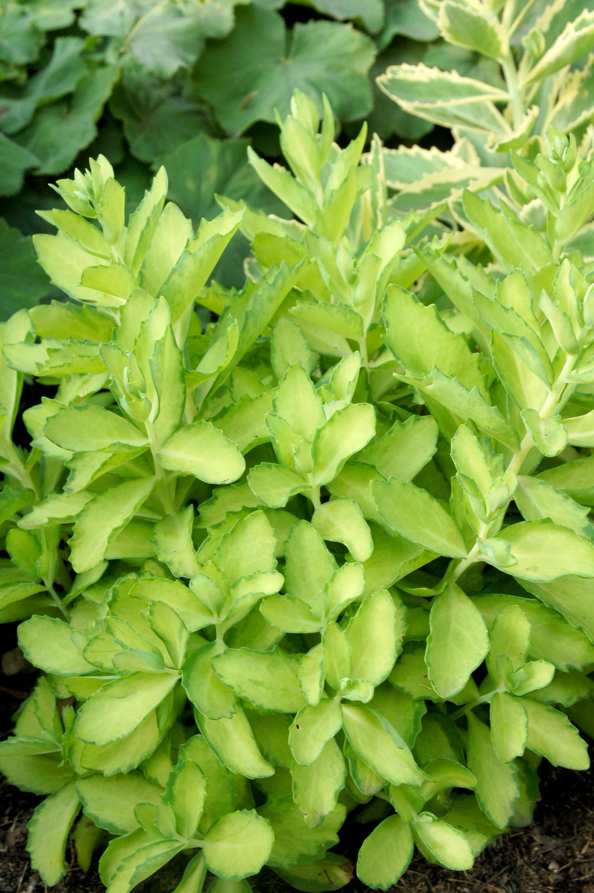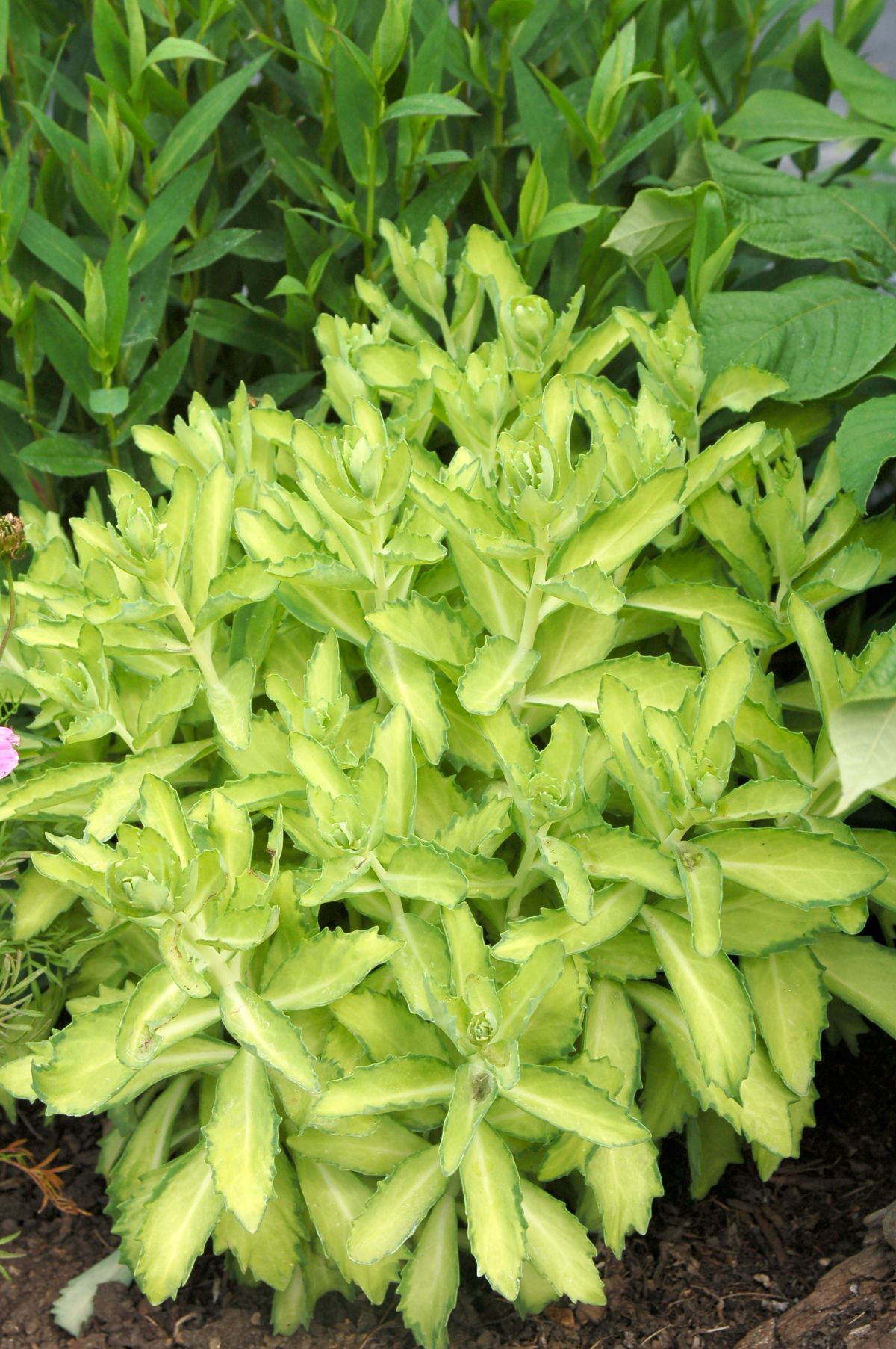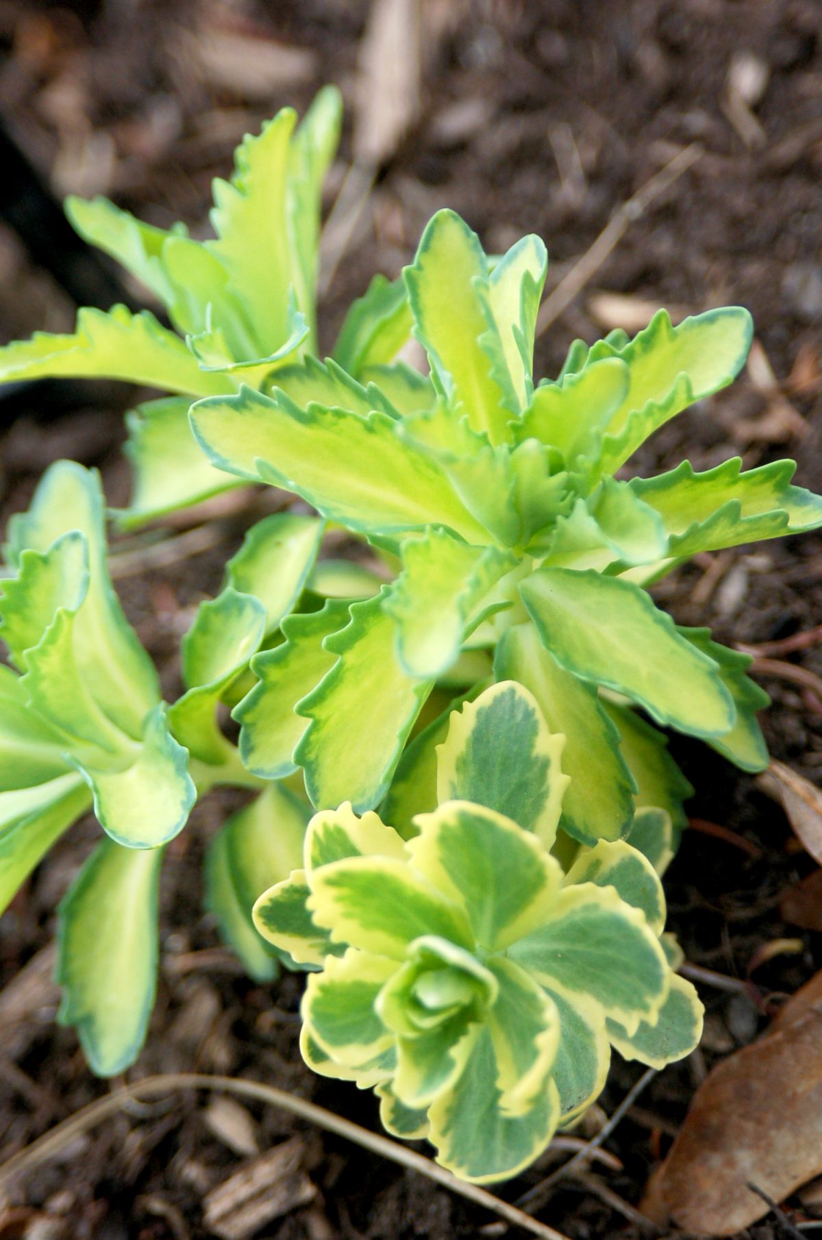 A reverse sport that came from Sedum 'Lajos' (Autumn CharmTM), Autumn DelightTM has foliage with a thin, green edge and chartreuse-yellow centers. Flowers just like 'Autumn Joy', the parent. Due to the variegation the height seems to be shorter. So far we’ve only seen it grow to 18 inches. 'Beka' means frog in Hungarian and was my dad’s affectionate name for my mom. The foliage is showiest in May and June.