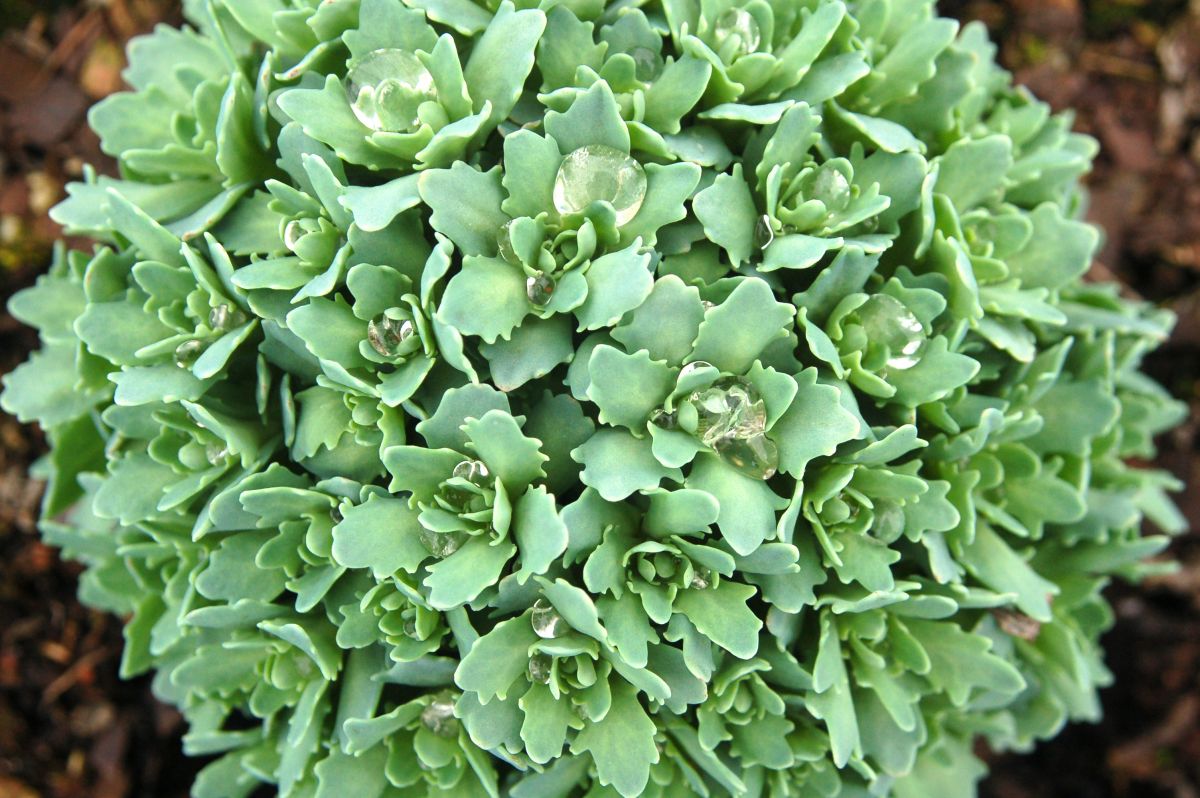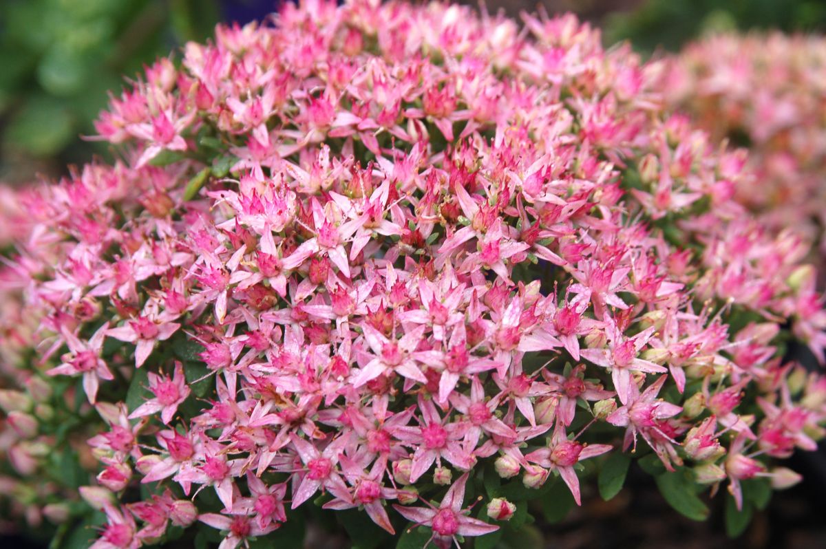 Pointed gray-green foliage in tight clumps has pink flowers on one-inch stems, starting in mid- August through September. This pink companion to 'Thundercloud' was selected as much for its foliage as it was for the flower color! Full sun to light shade with well-drained soil is best.