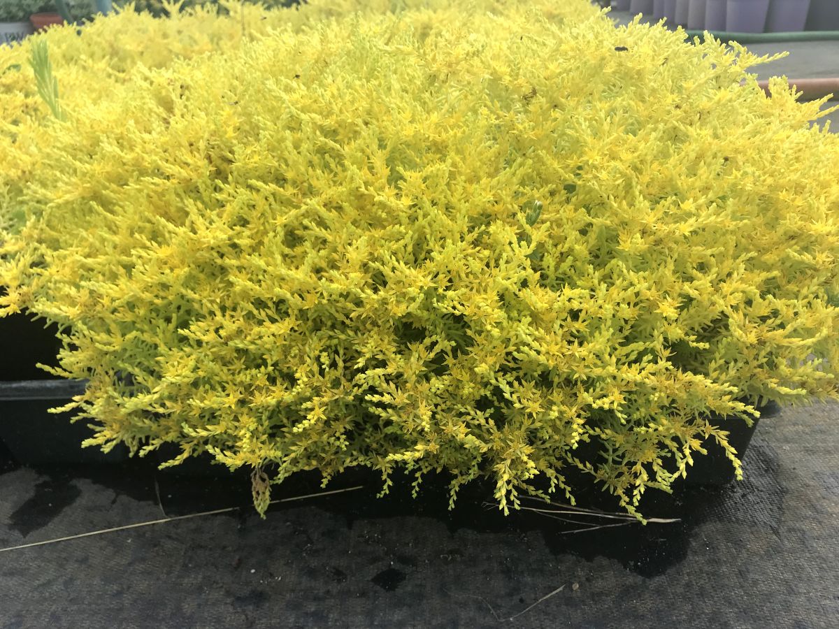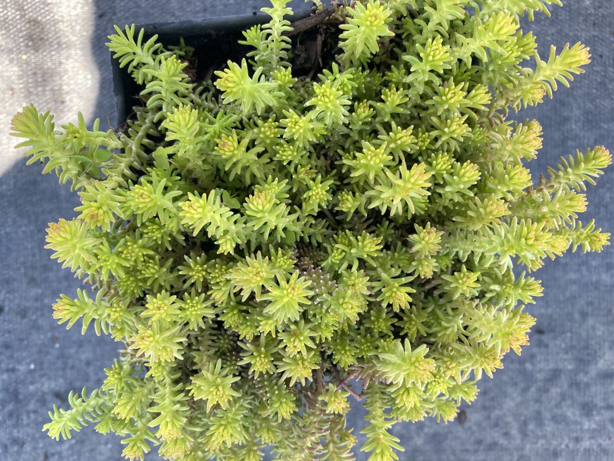 Chartreuse fingered foliage turns to gold as the season heads into summer, with peak gold foliage quickly followed by yellow flowers in July. Spreading plants grow 4-6 inches tall and over one inch wide. Larger foliage and better vigor than 'Golddigger'.